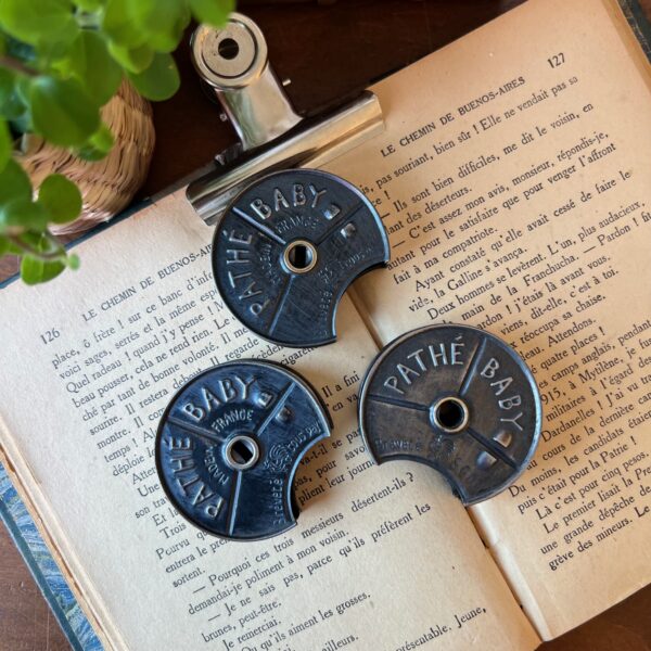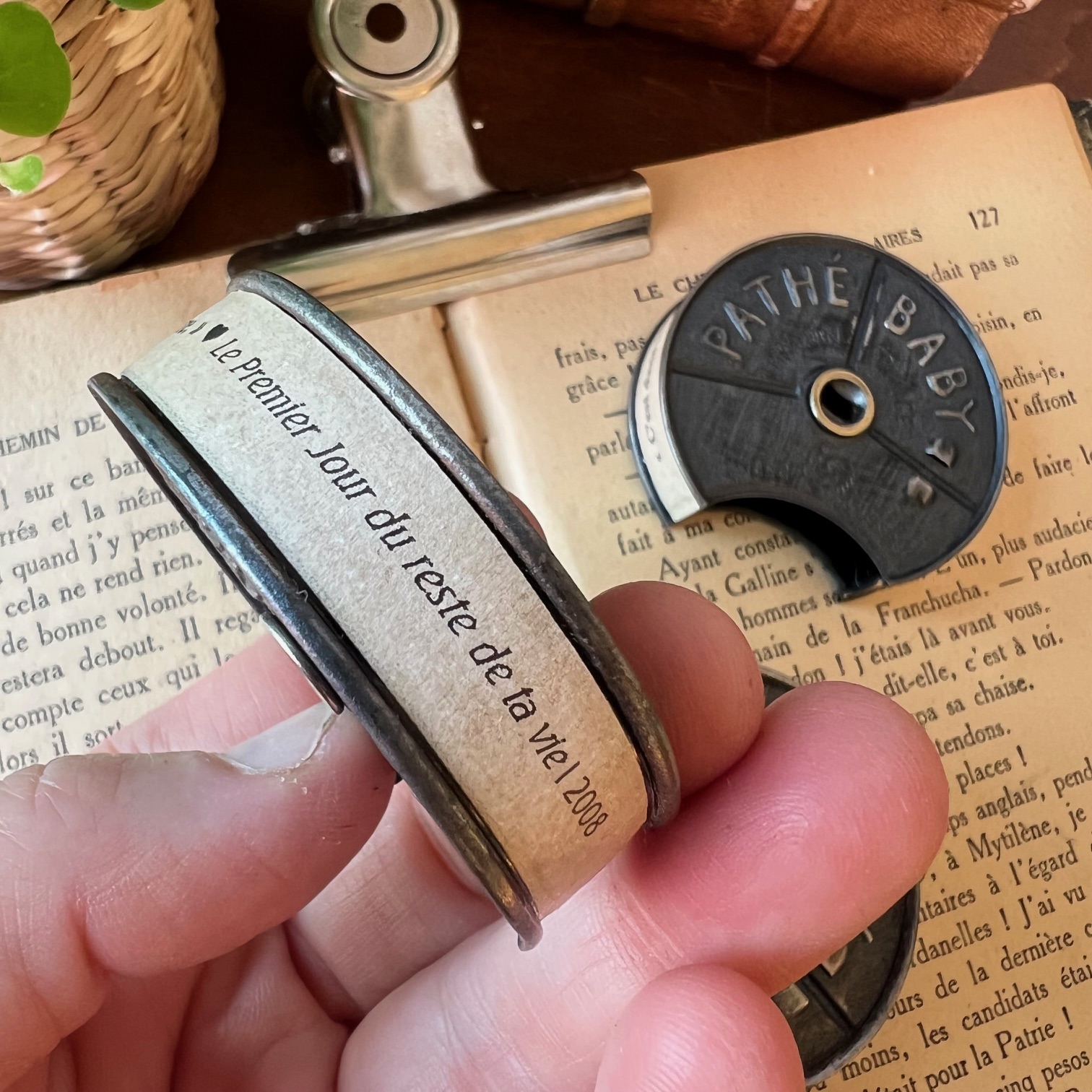 Quand le cinéma s’enroule autour des souvenirs… J’ai ressorti ces petites merveilles oubliées : des bobines Pathé Baby, vestiges d’un autre temps, quand les films se regardaient en 9,5 mm et que le projecteur faisait danser la lumière sur les murs.