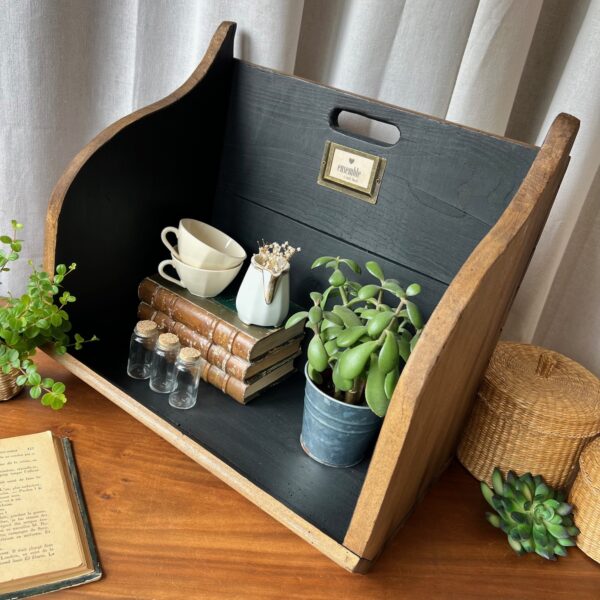 Le bois a été nettoyé, traité, patiné, ciré… et l’intérieur a été peint d’un noir profond, élégant et contrasté.