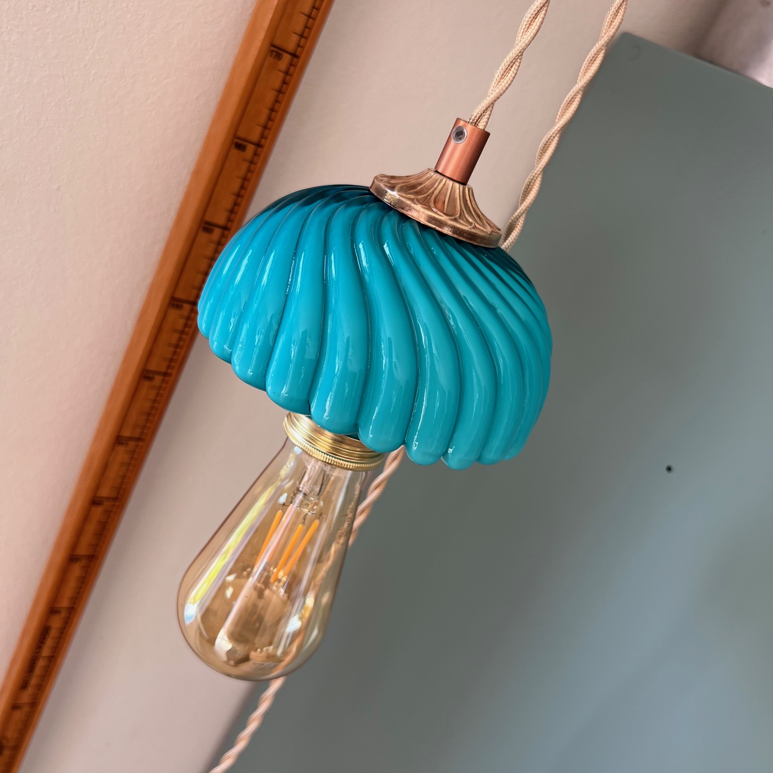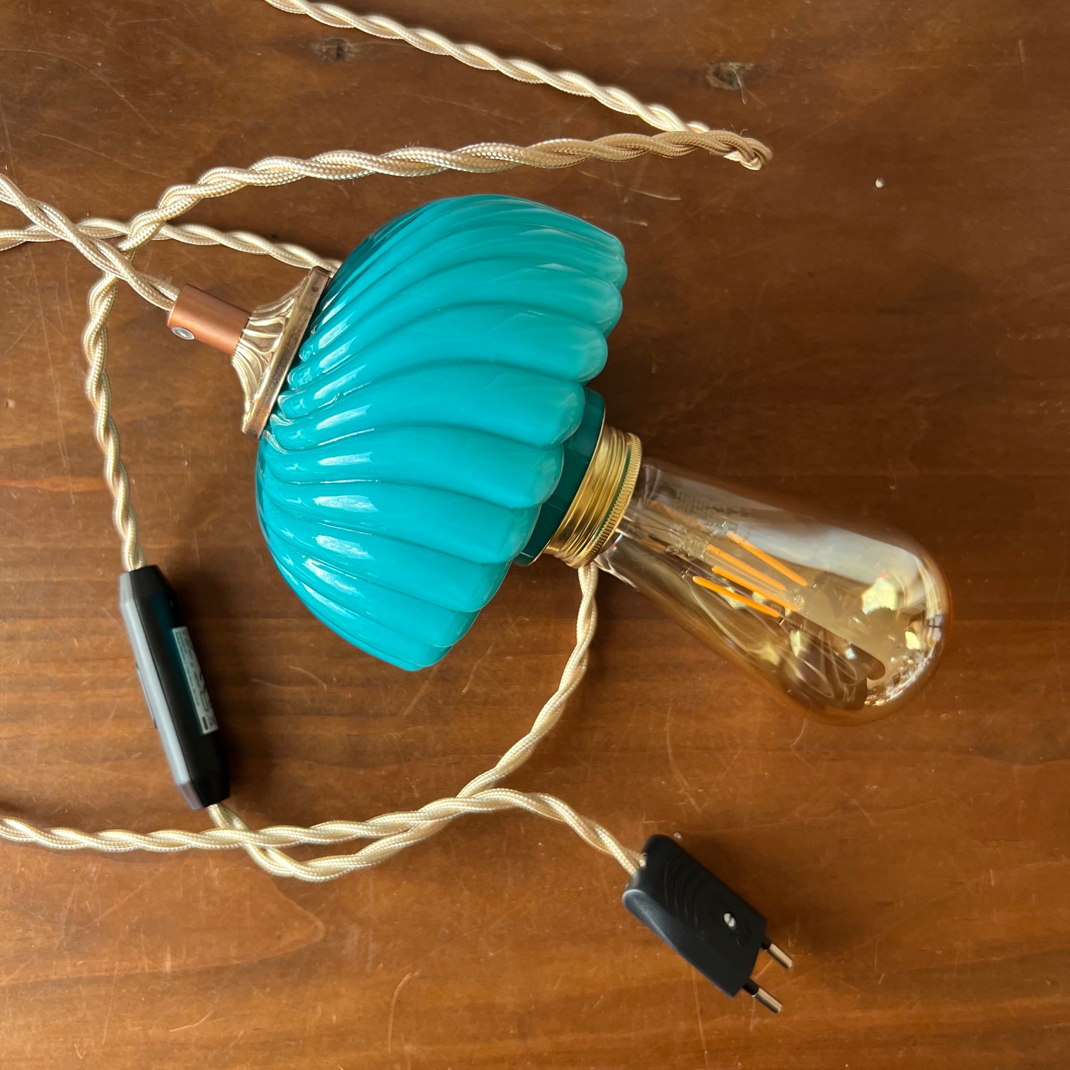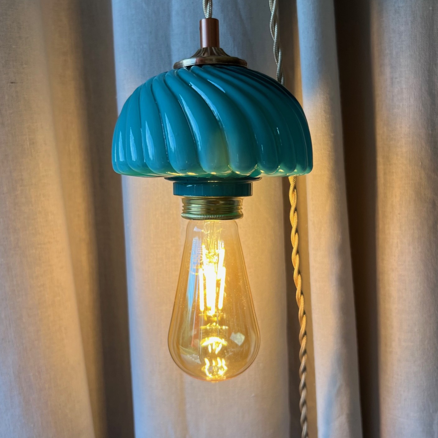 #baladeuse #lampevintage #opalineturquoise #champignonlamp #luminaireancien #upcyclingdeco #brocanteenligne #decoauthentique #lampeoriginale #madeinatelier