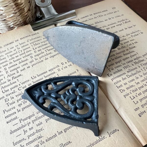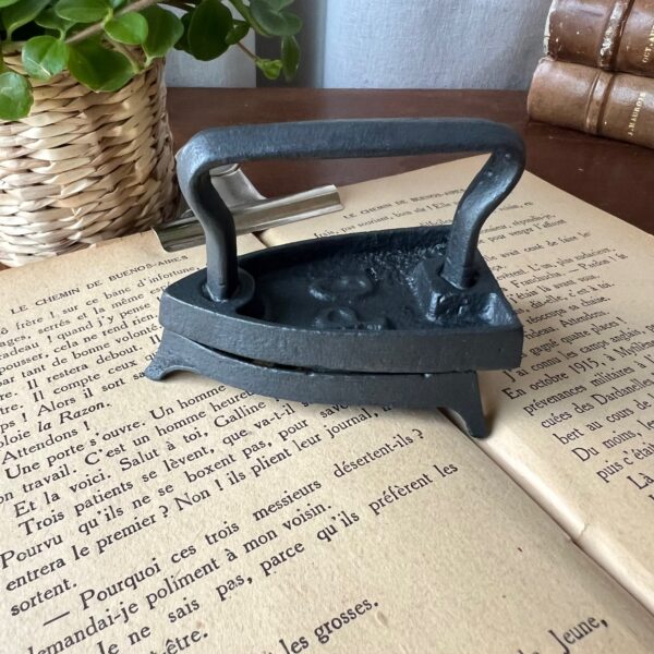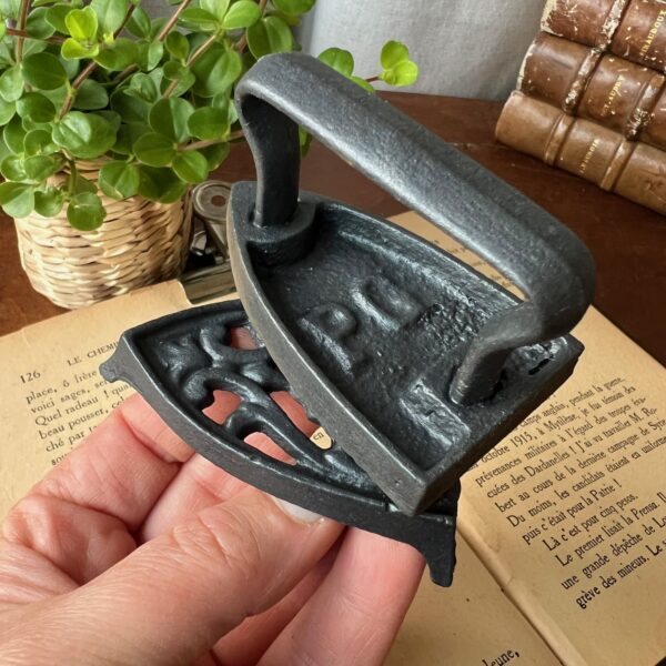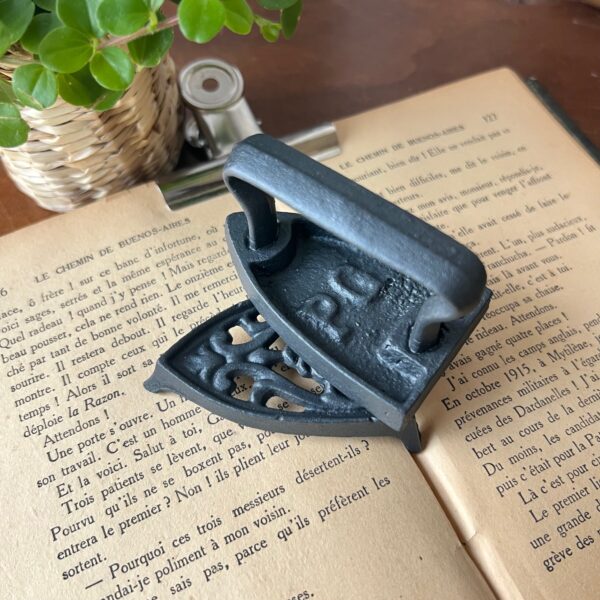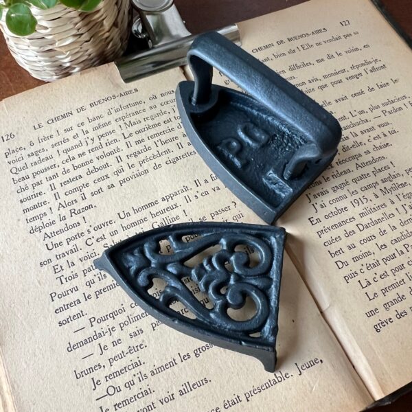 Il tient dans la paume d’une main, mais son histoire pèse son poids. Ce tout petit fer à repasser en fonte, sobrement marqué « P.G. », sur son socle ajouré, était autrefois l’allié discret des brodeuses et dentellières. Un outil de précision, conçu pour repasser les coins les plus fins des ouvrages délicats : napperons, cols festonnés, mouchoirs brodés à la main…