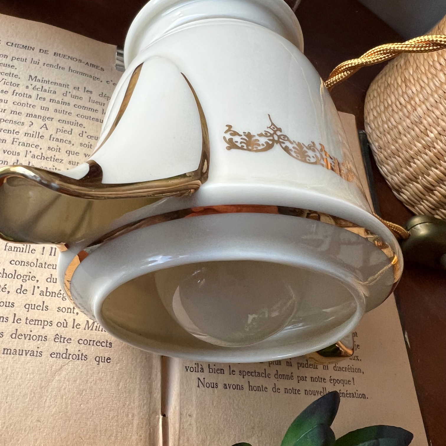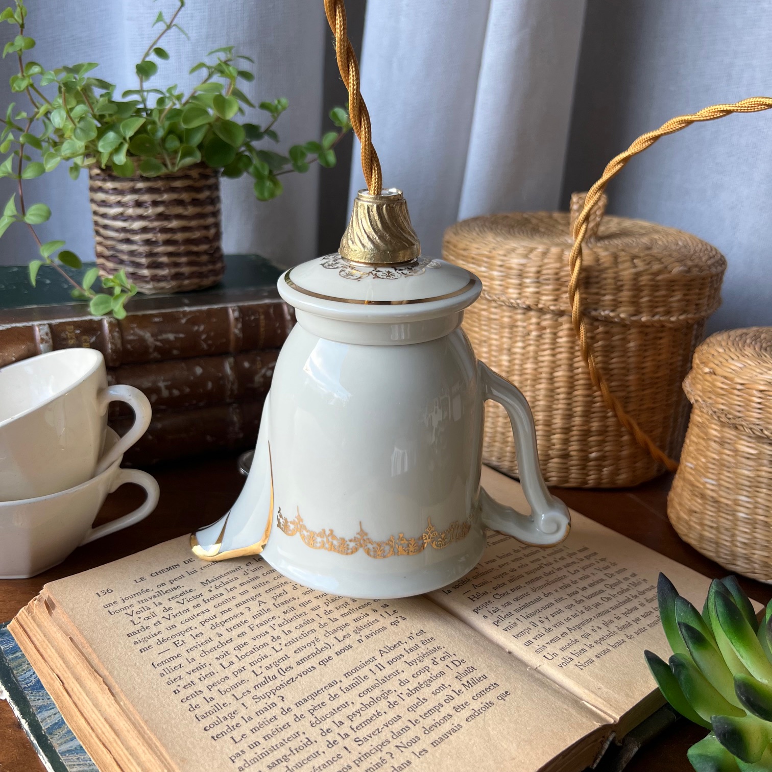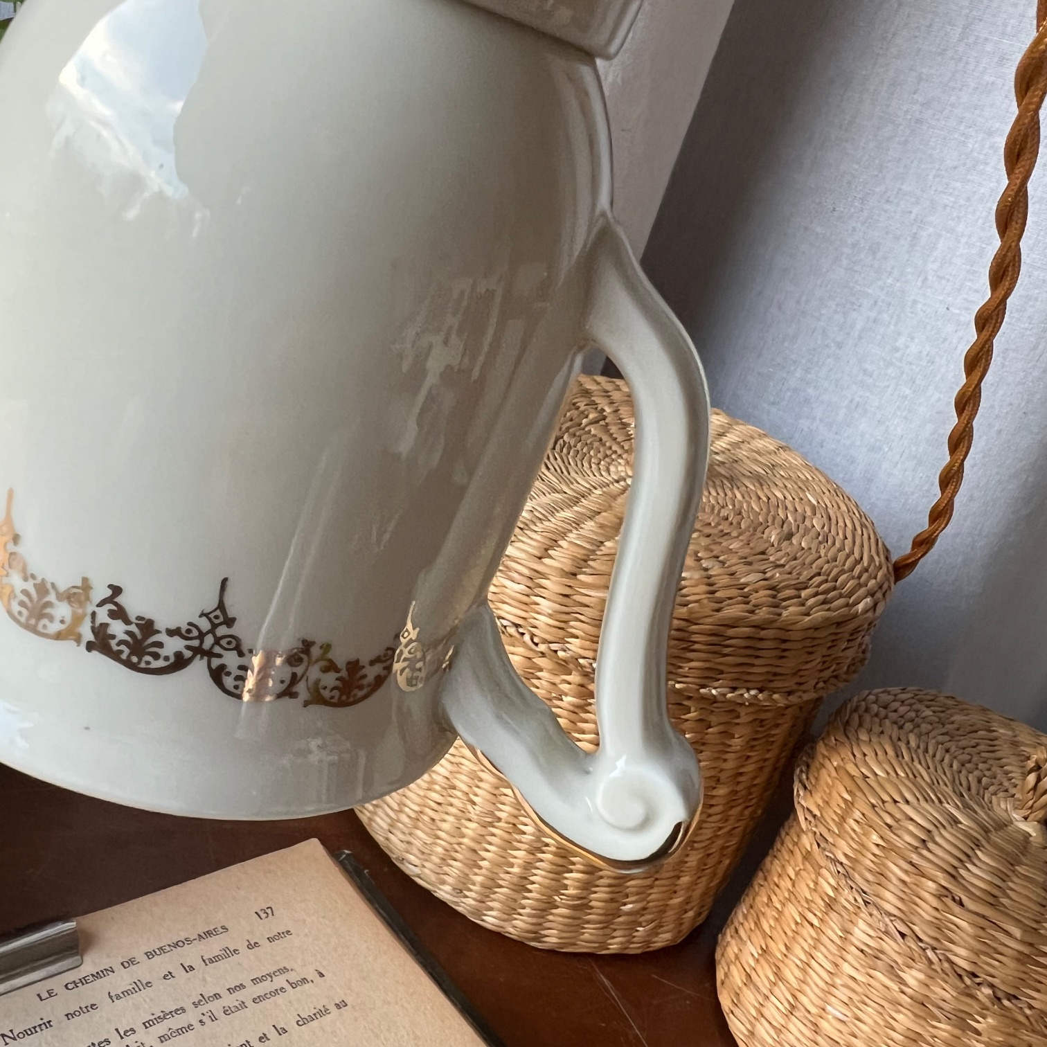 « J’ai connu les heures feutrées. Les nappes blanches, les cuillères en argent, les murmures de fin d’après-midi autour d’un thé trop chaud ou d’un café bien serré. J’étais un petit pot à lait en porcelaine de Limoges, blanc, avec ses dorures, délicat… On me sortait pour les beaux moments.
