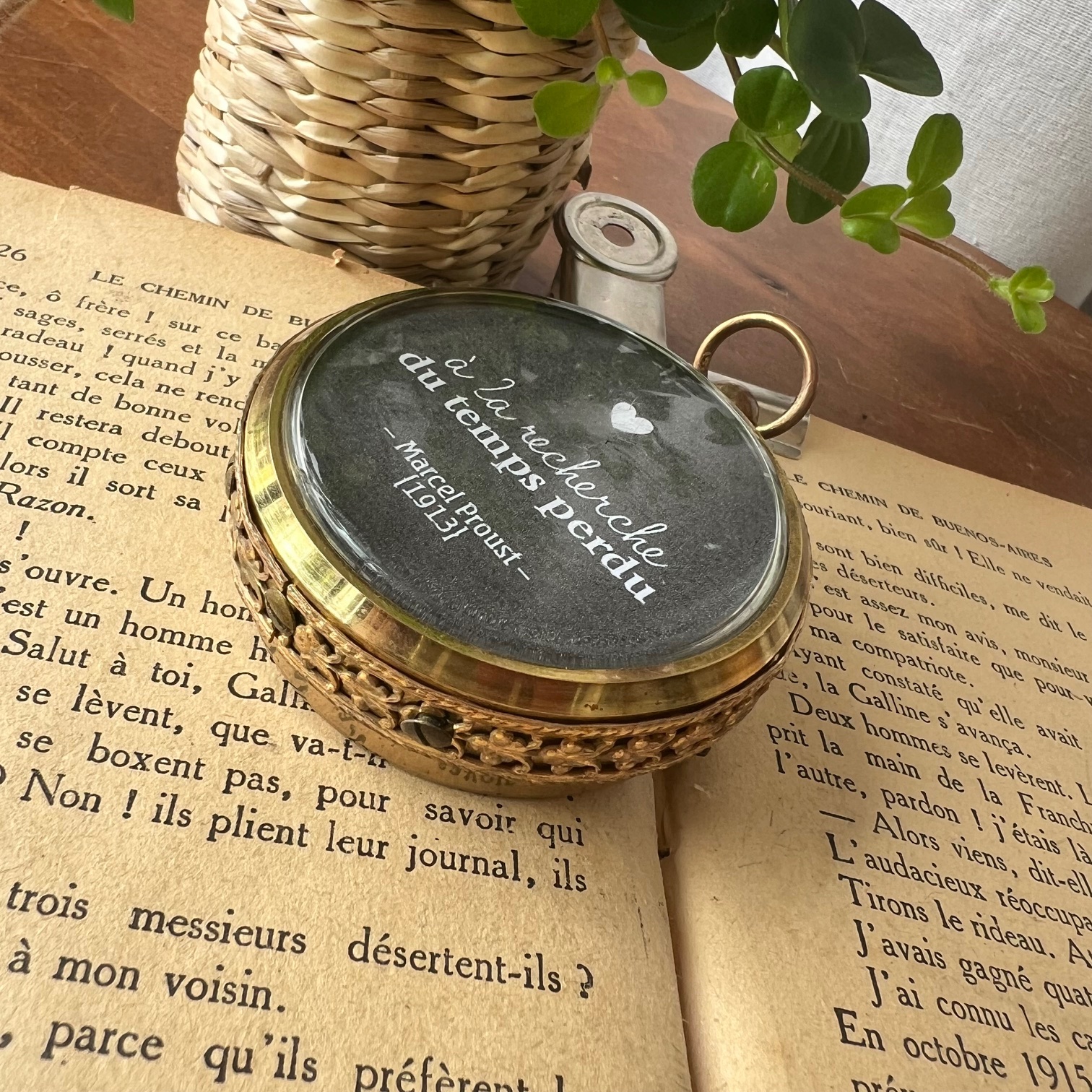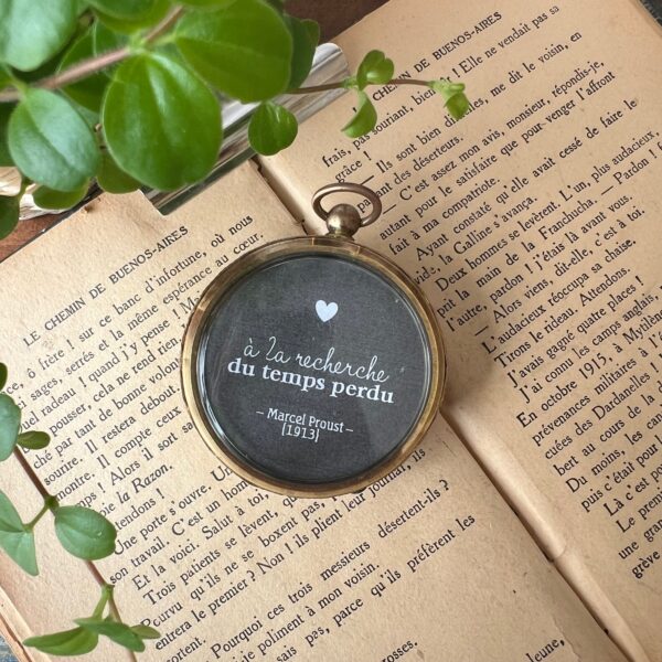 Derrière son cadran, le célèbre titre de Marcel Proust s’est glissé comme une invitation douce à la rêverie et aux souvenirs.
