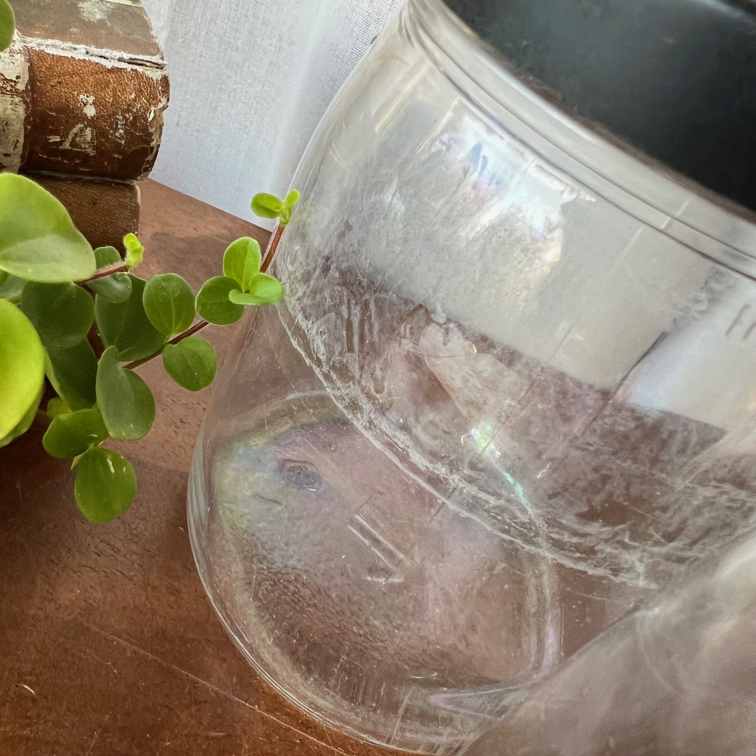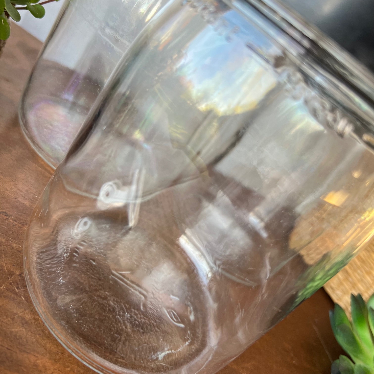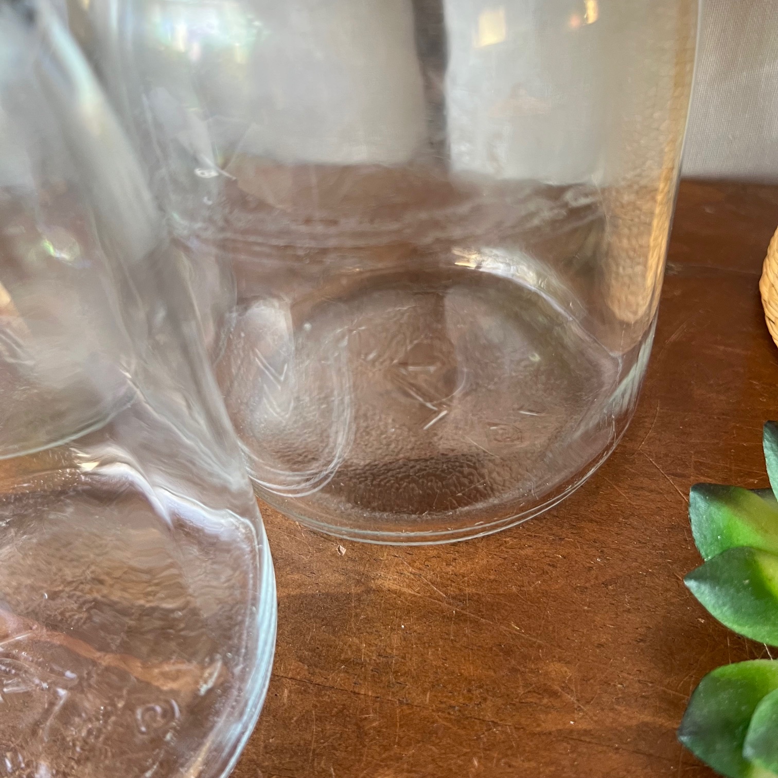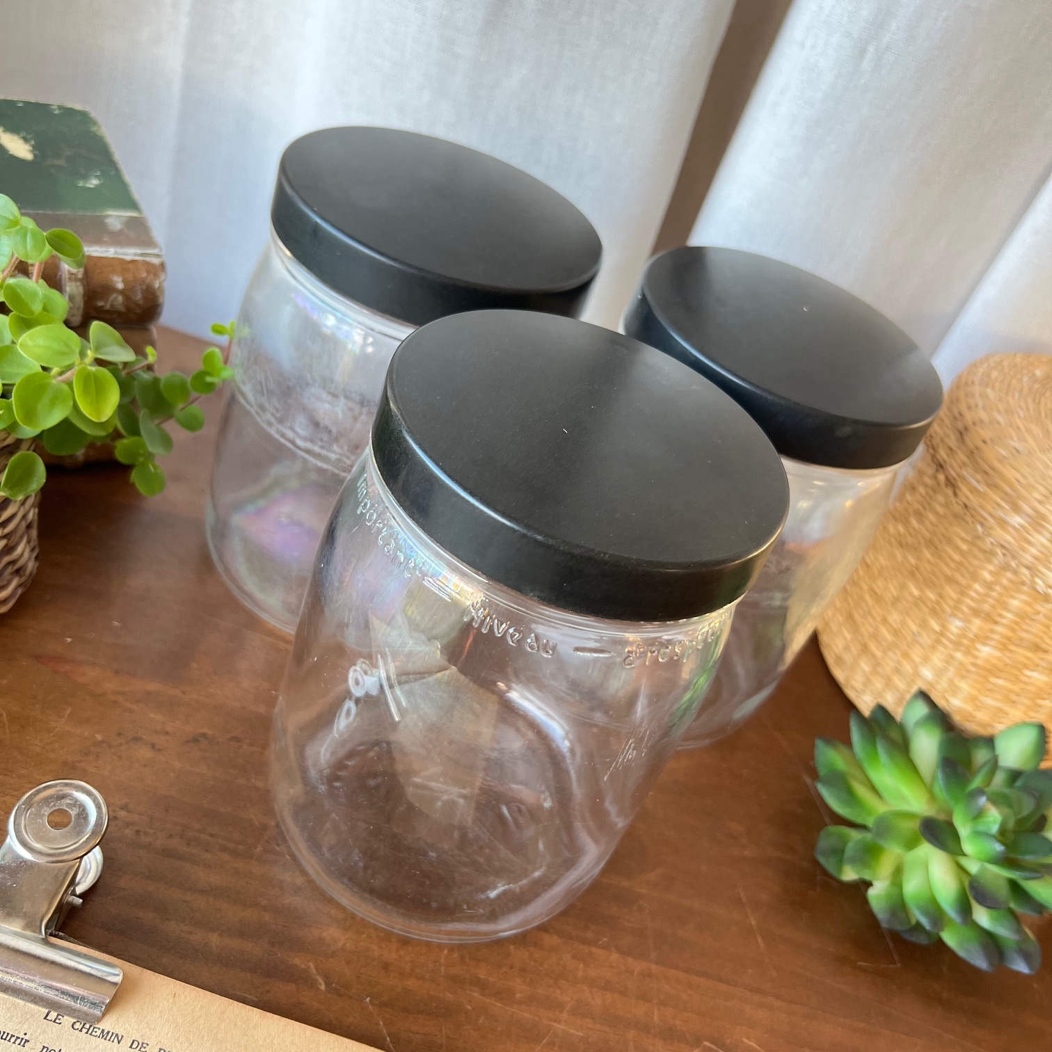Trois bocaux identiques, en verre épais, chacun avec son couvercle en bakélite très foncé, presque noir. Ils ont servi, ils ont vécu, et quelques marques du temps restent visibles… mais dès qu’on y glisse quelque chose — pâtes, riz, sablés, boutons, vrac créatif ou petits trésors du quotidien — ces marques disparaissent presque.