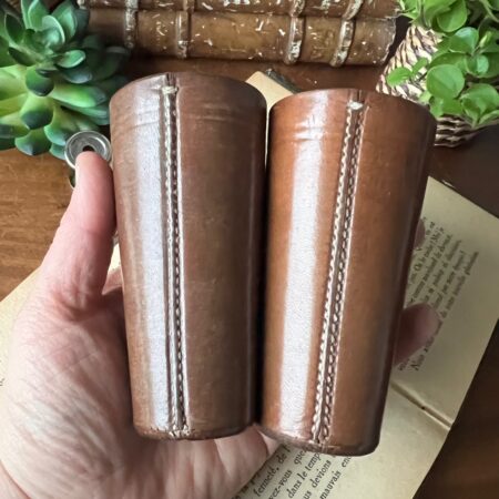 Paire de gobelets en cuir avec 2 dés anciens