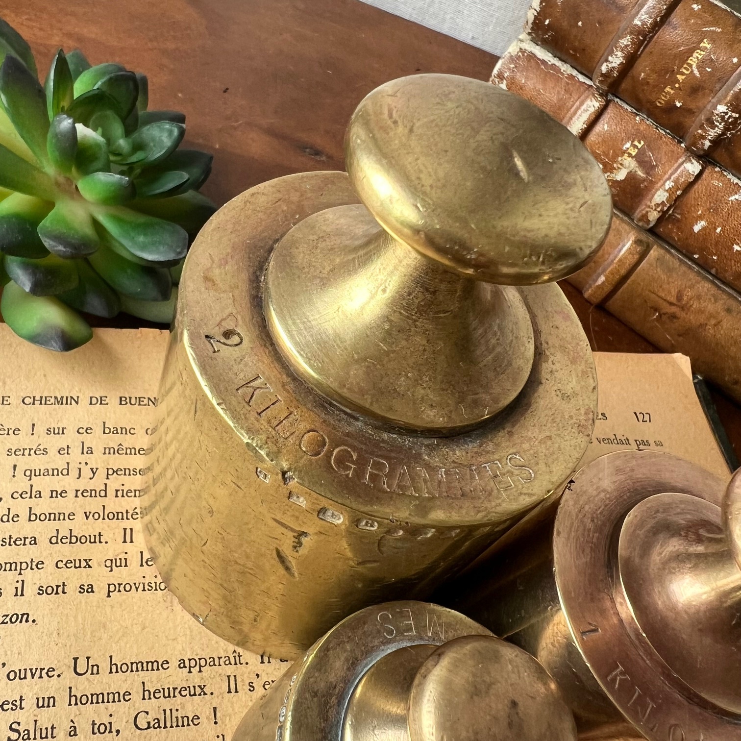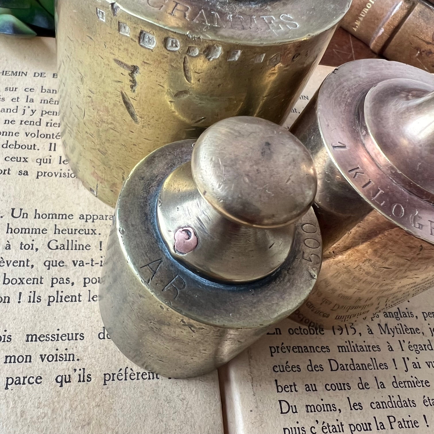 Un lot exceptionnel de plus de 50 poids anciens en laiton doré, allant du minuscule 5 grammes aux pièces les plus imposantes proches de 2 kilogrammes.