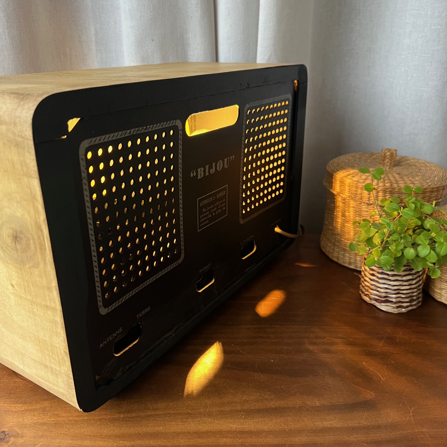 #mavaliseencarton #postetsf #radiovintage #objetdetourne #restauration #lampeancienne #brocante #objetshistoire #avantapres #decoauthentique #lumierechaude #pieceunique