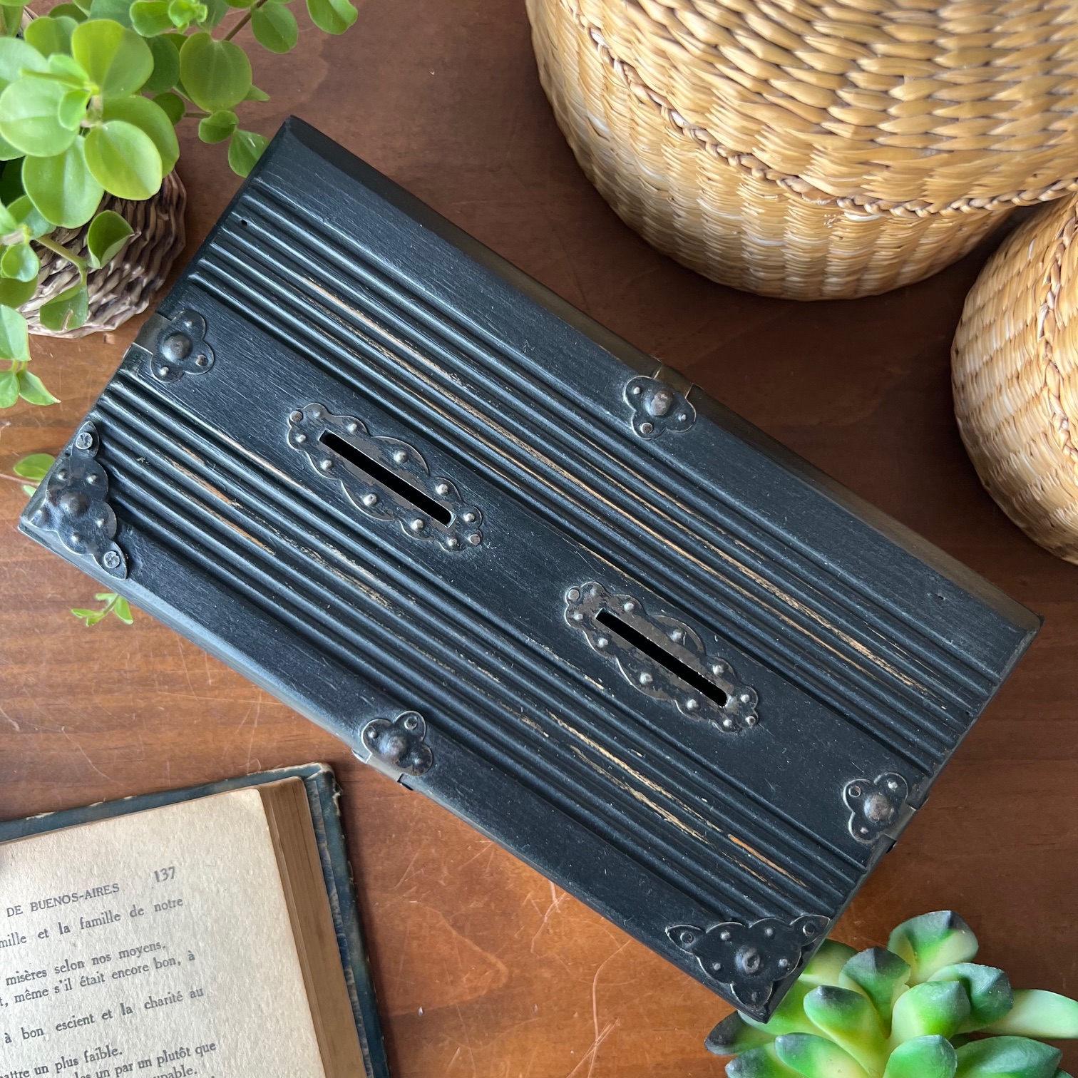 Boite en bois, double tirelire
