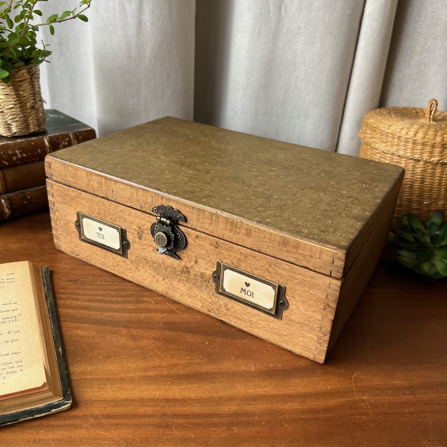 Boite en bois restaurée « Toi & Moi »