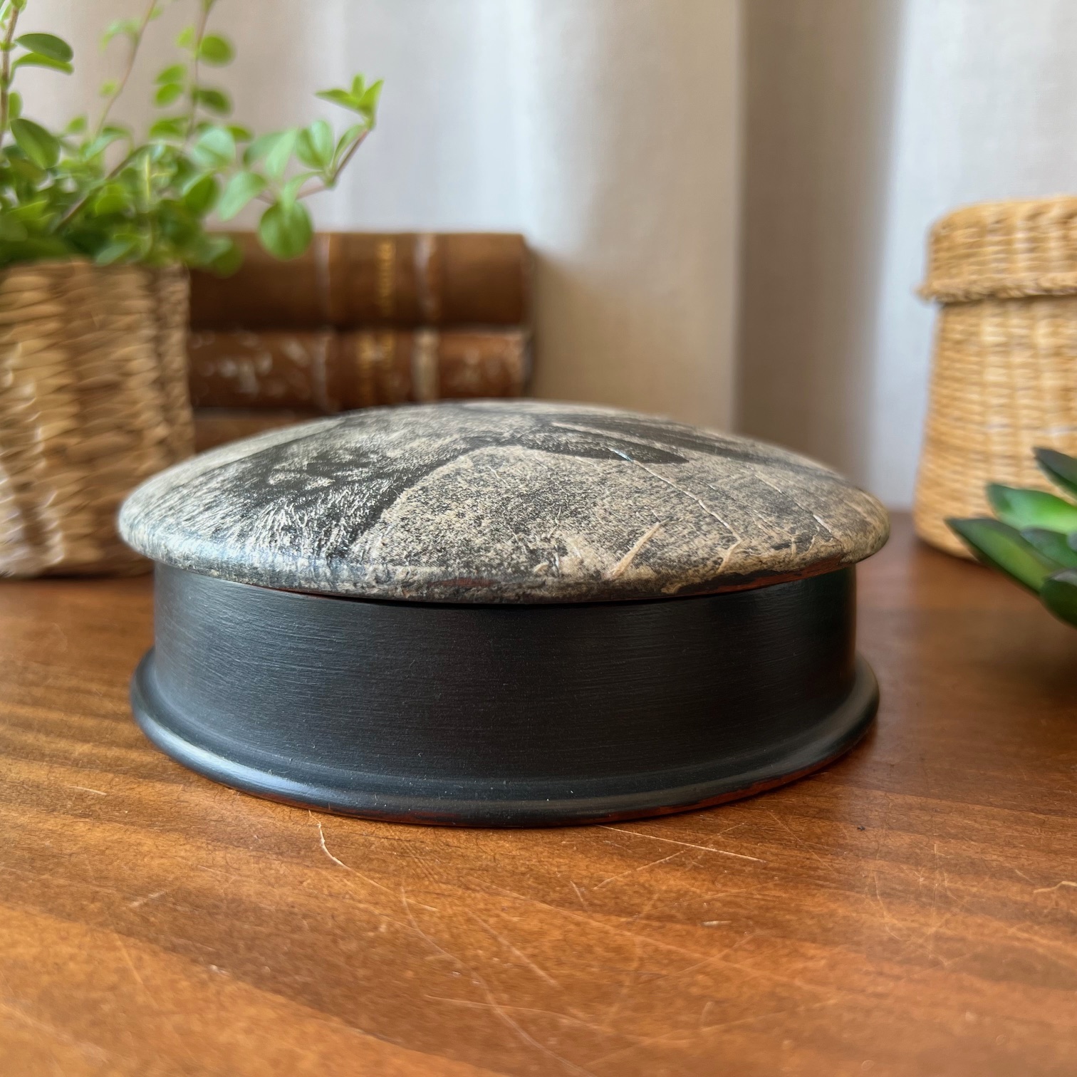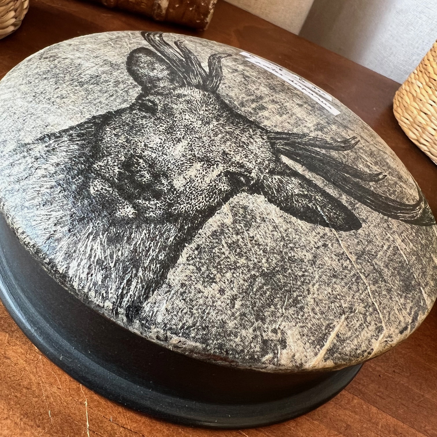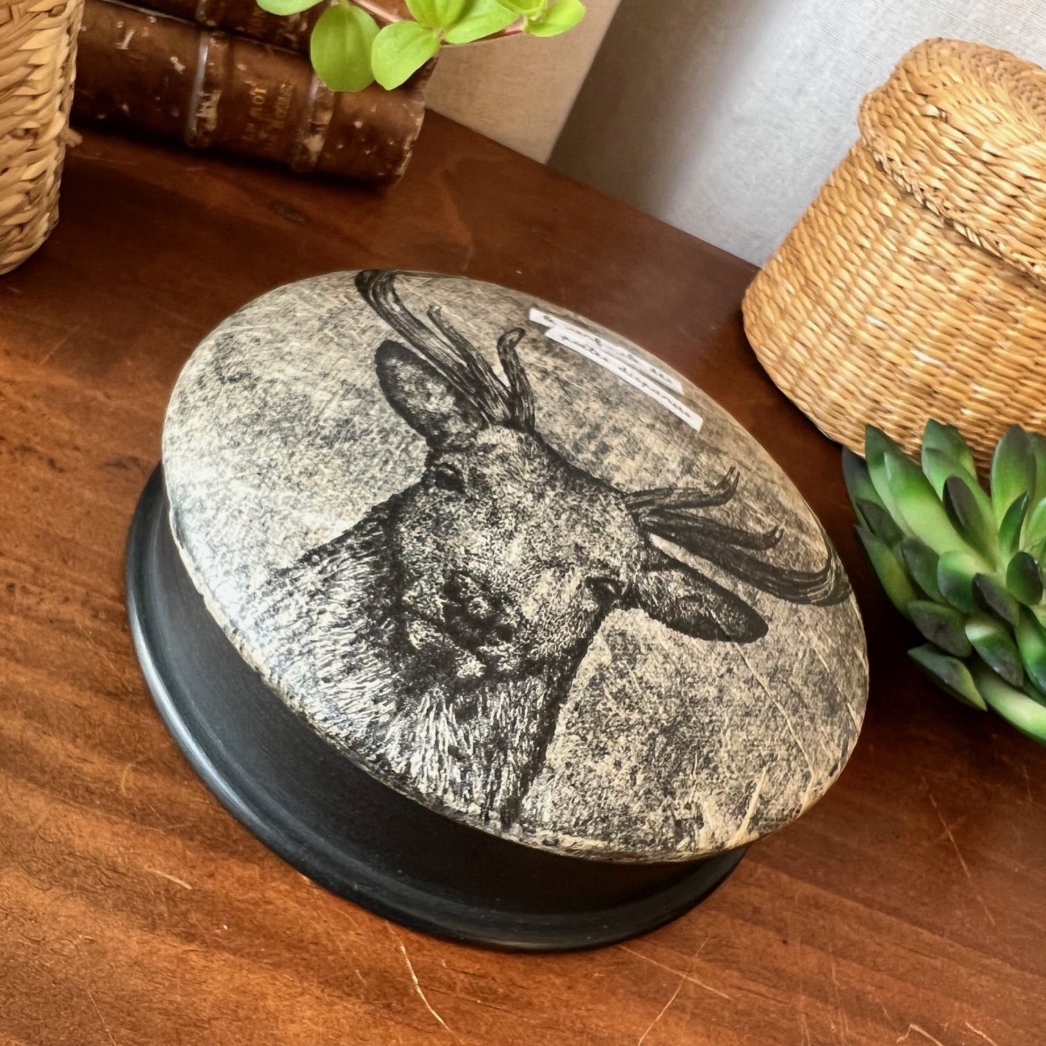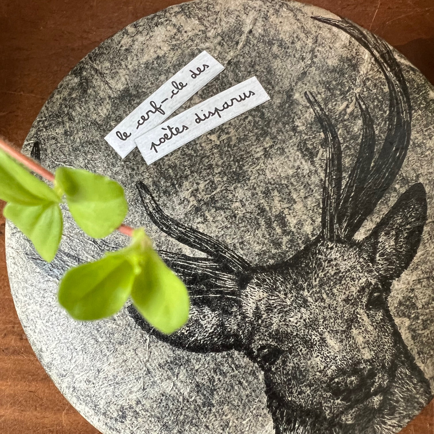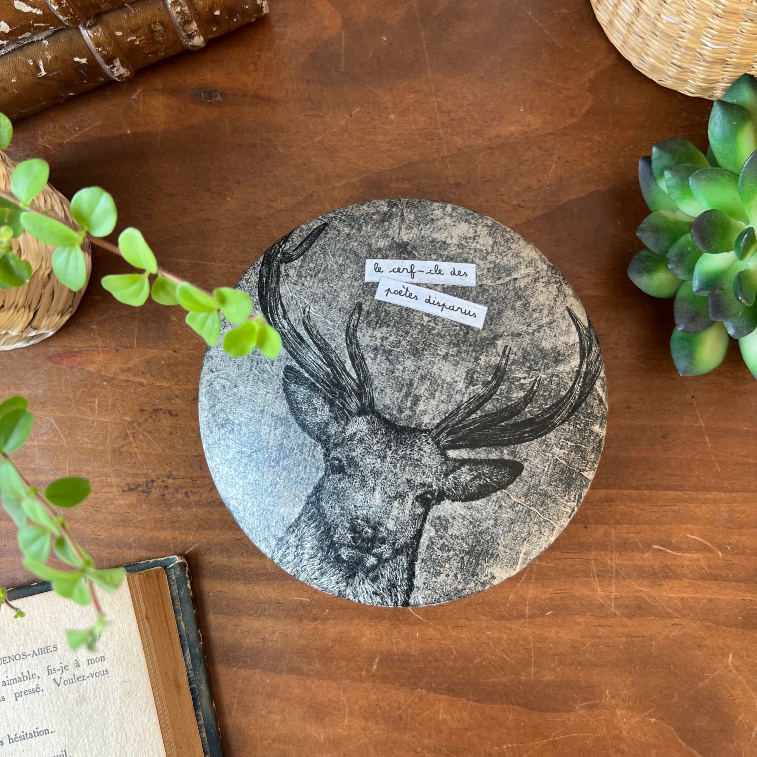 Boite ronde en bois « Le cerf-cle des poètes disparus » n°2