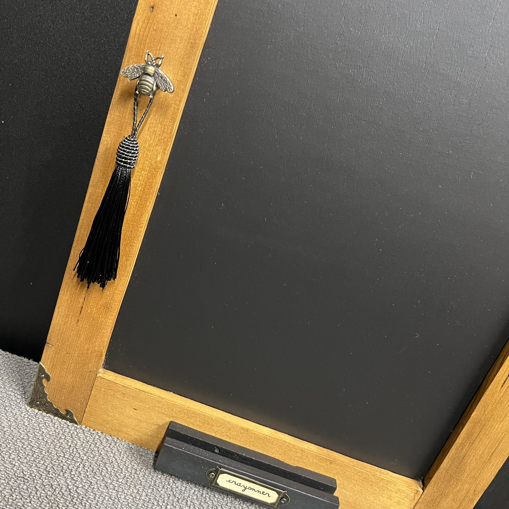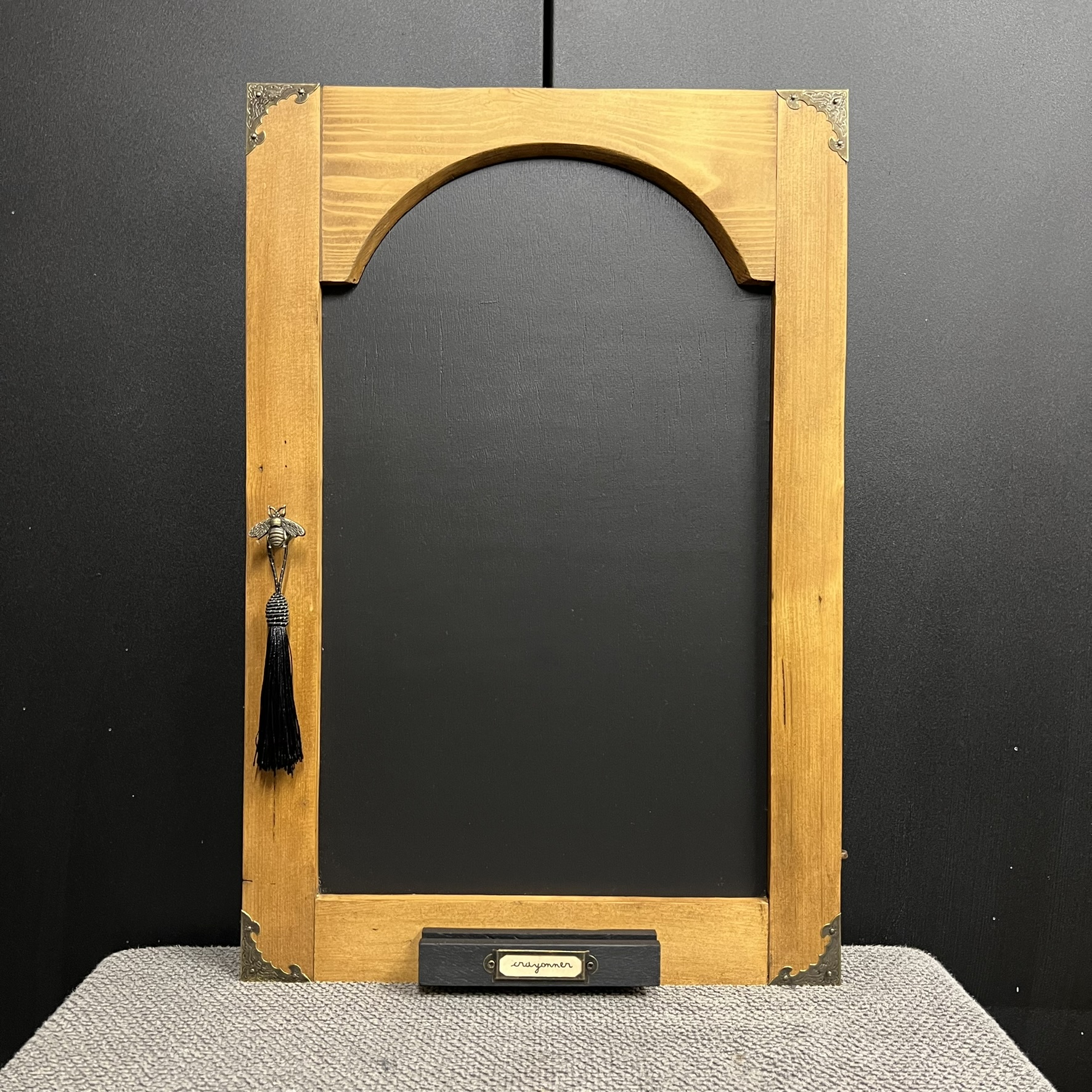La jolie rencontre entre un encadrement à la silhouette atypique, de jolis détails en laiton et une peinture spéciale ardoise ! Un coup de cœur à poser ou à accrocher.