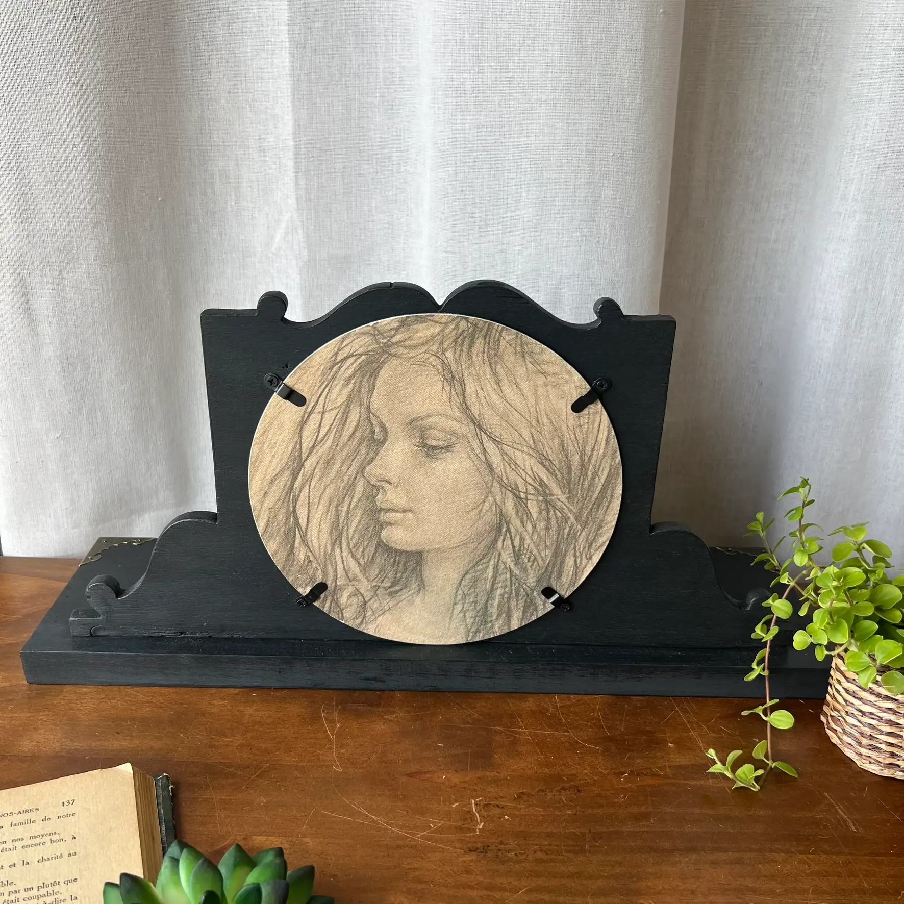Au dos, j’ai contrecollé une illustration : le visage d’une femme, dessiné au crayon, tout en finesse. Comme une présence silencieuse, cachée, qui accompagne sans jamais s’imposer.