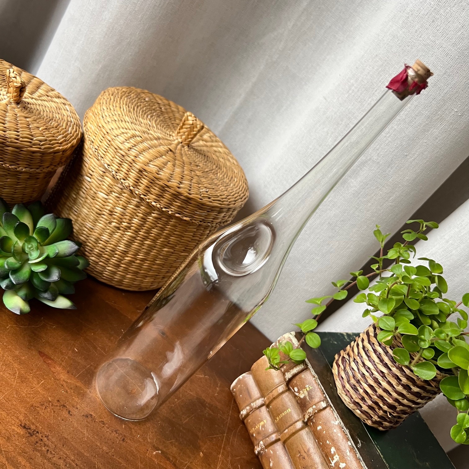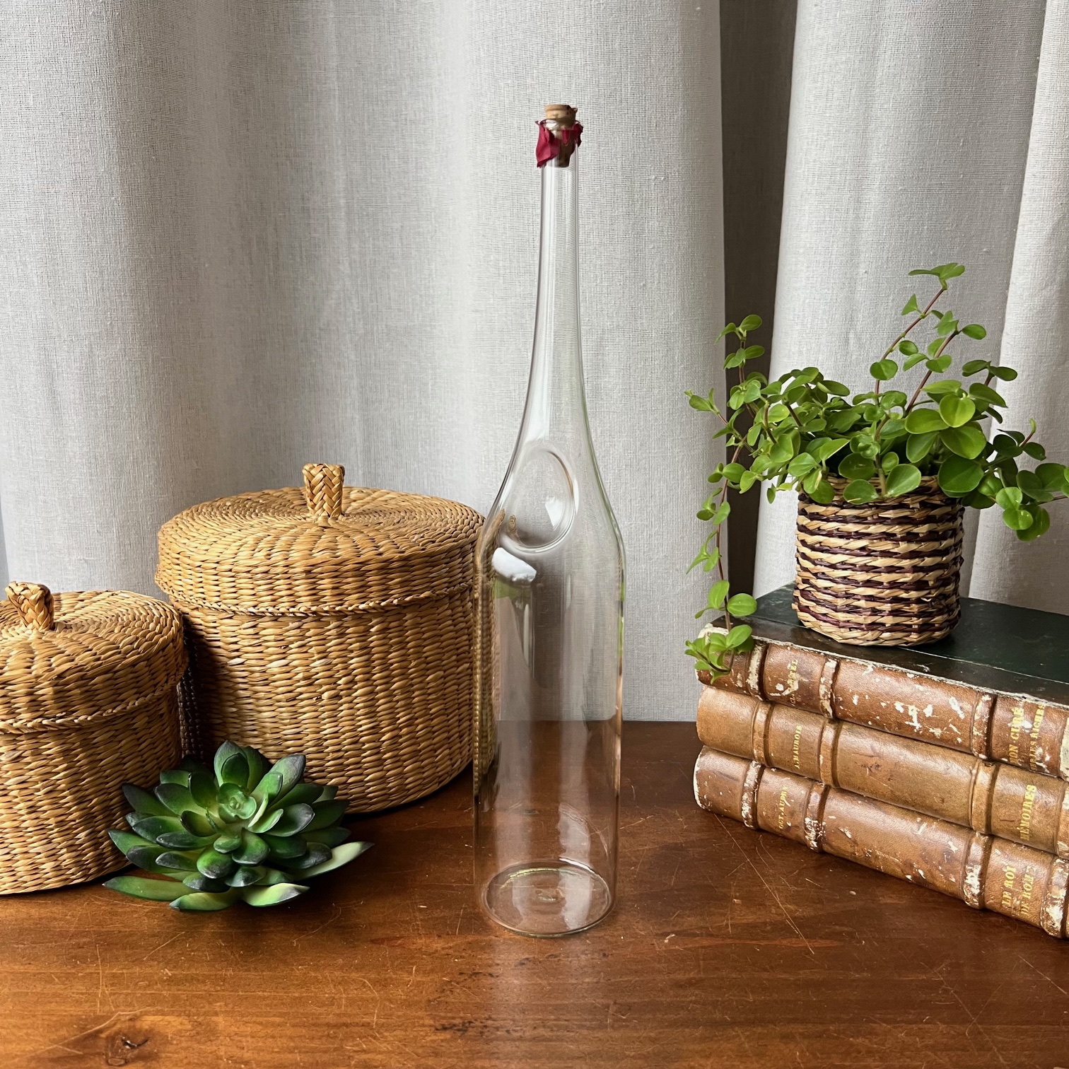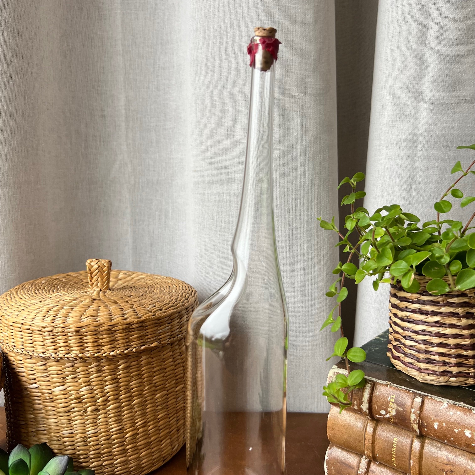Une bouteille si fine, si élancée, que la silhouette suffit à raconter l’élégance d’une autre époque. Le long goulot très étroit, le creux naturel où vient se loger le pouce — comme si elle avait été pensée pour servir avec grâce.