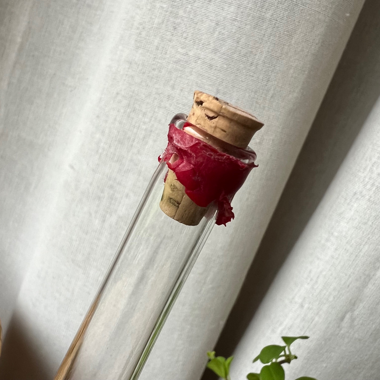 Le minuscule bouchon en liège est encore là, fidèle, entouré des derniers restes de cire rouge qui le scellait autrefois.