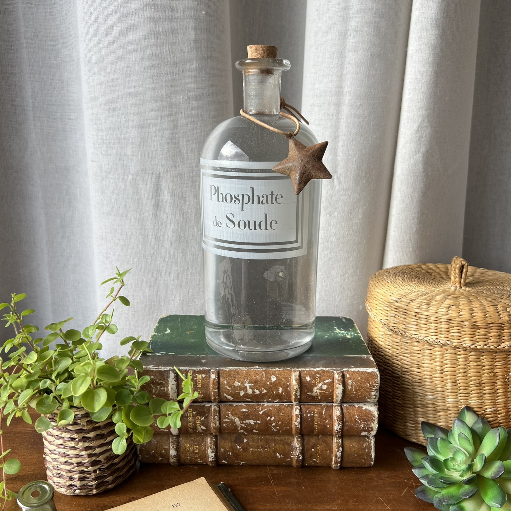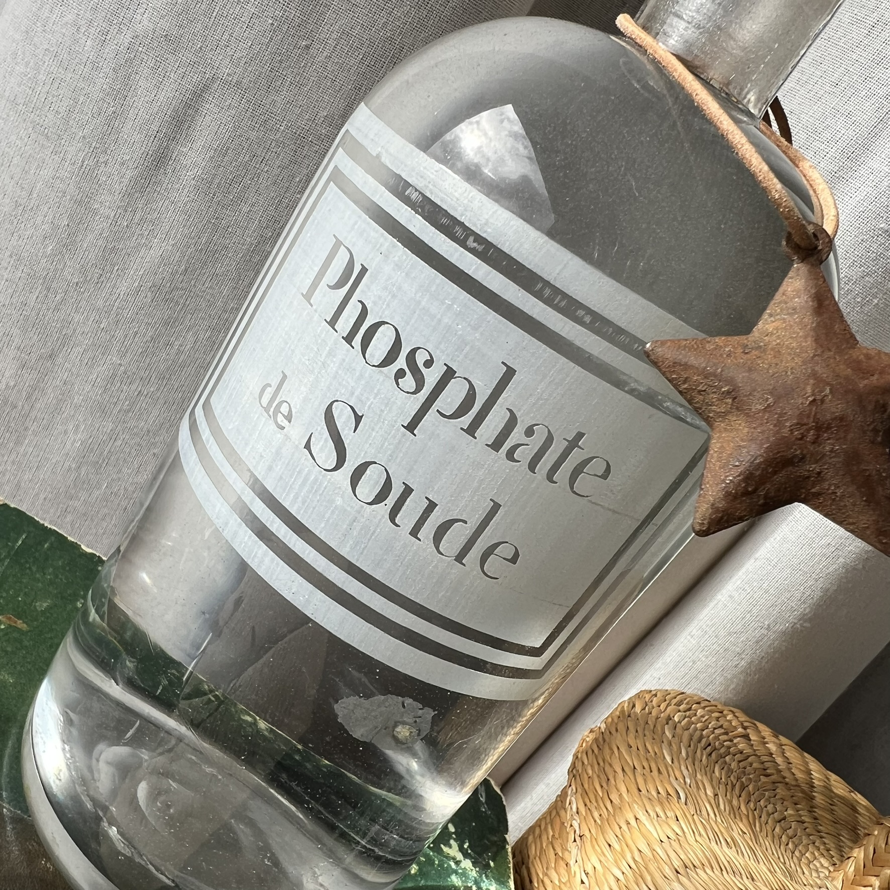 Le phosphate de soude, c’était le grand nettoyant d’autrefois. Celui qu’on utilisait pour décaper, pour préparer, pour remettre à neuf. Un produit de travail. Ce flacon a probablement vécu dans une arrière-boutique, un atelier, une buanderie.