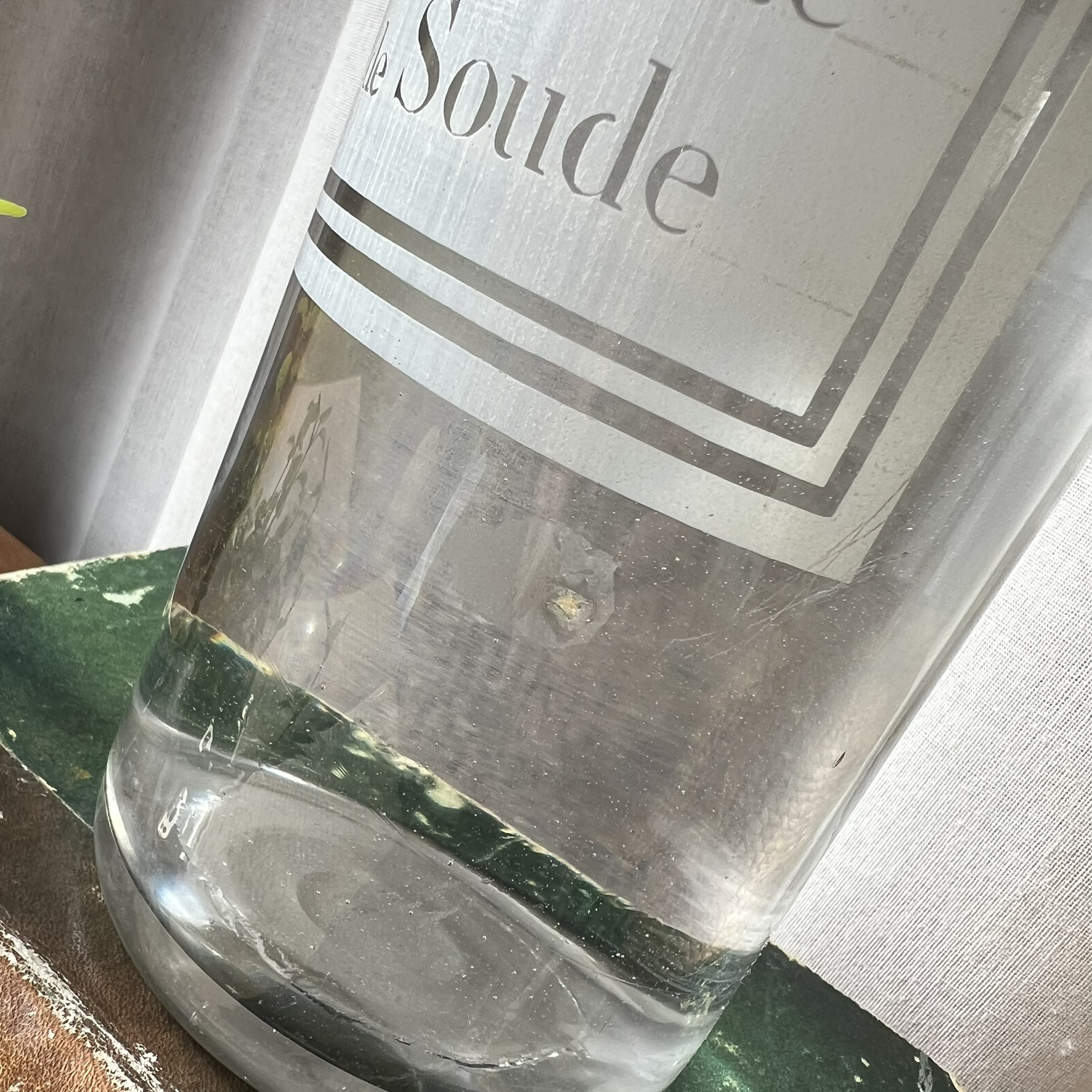Ce grand flacon d’un litre raconte toute une époque. Une époque où l’on lessivait les murs à la force des bras. Où l’on dégraissait les sols avant de repeindre. Où l’on préparait, frottait, nettoyait avec des produits bruts, efficaces, presque austères.