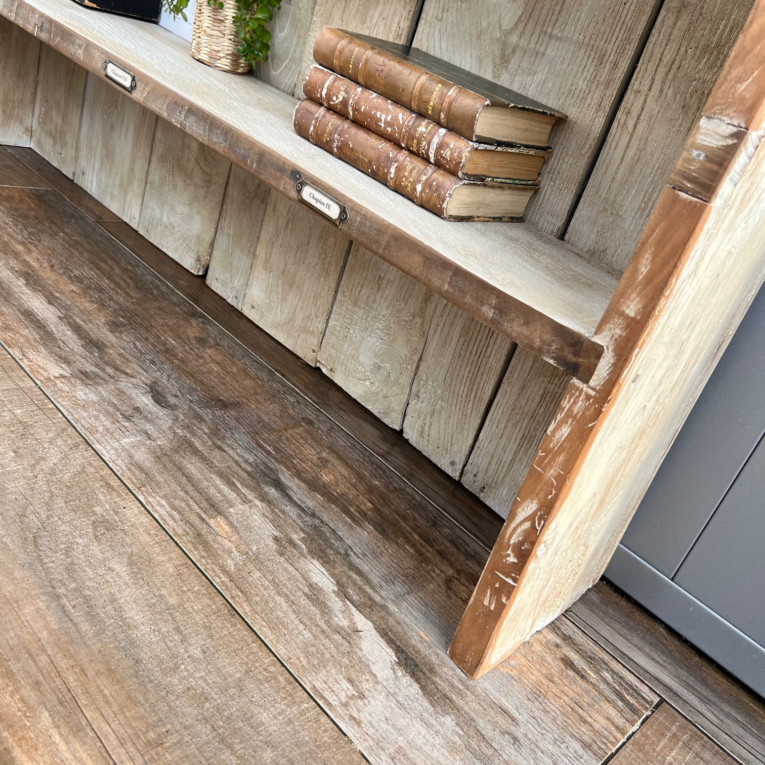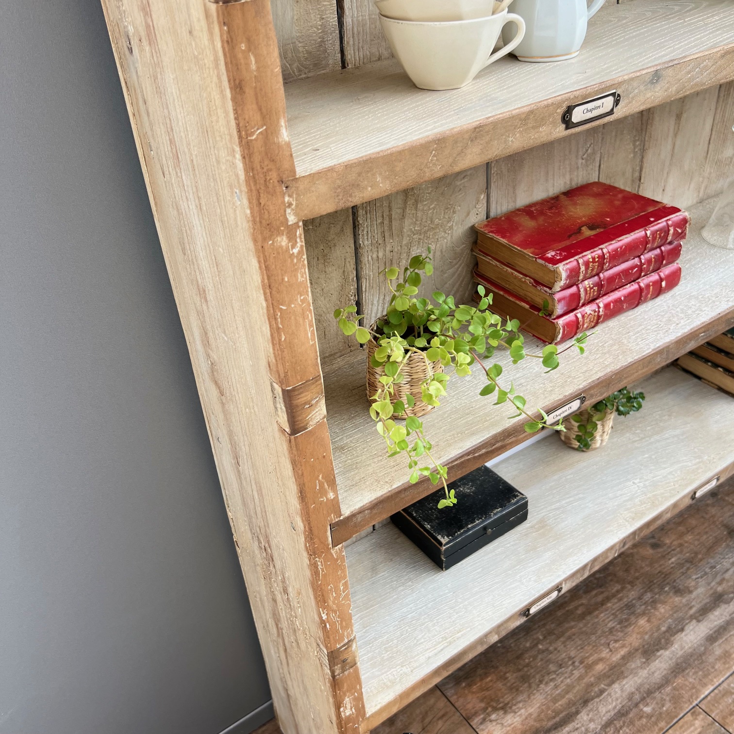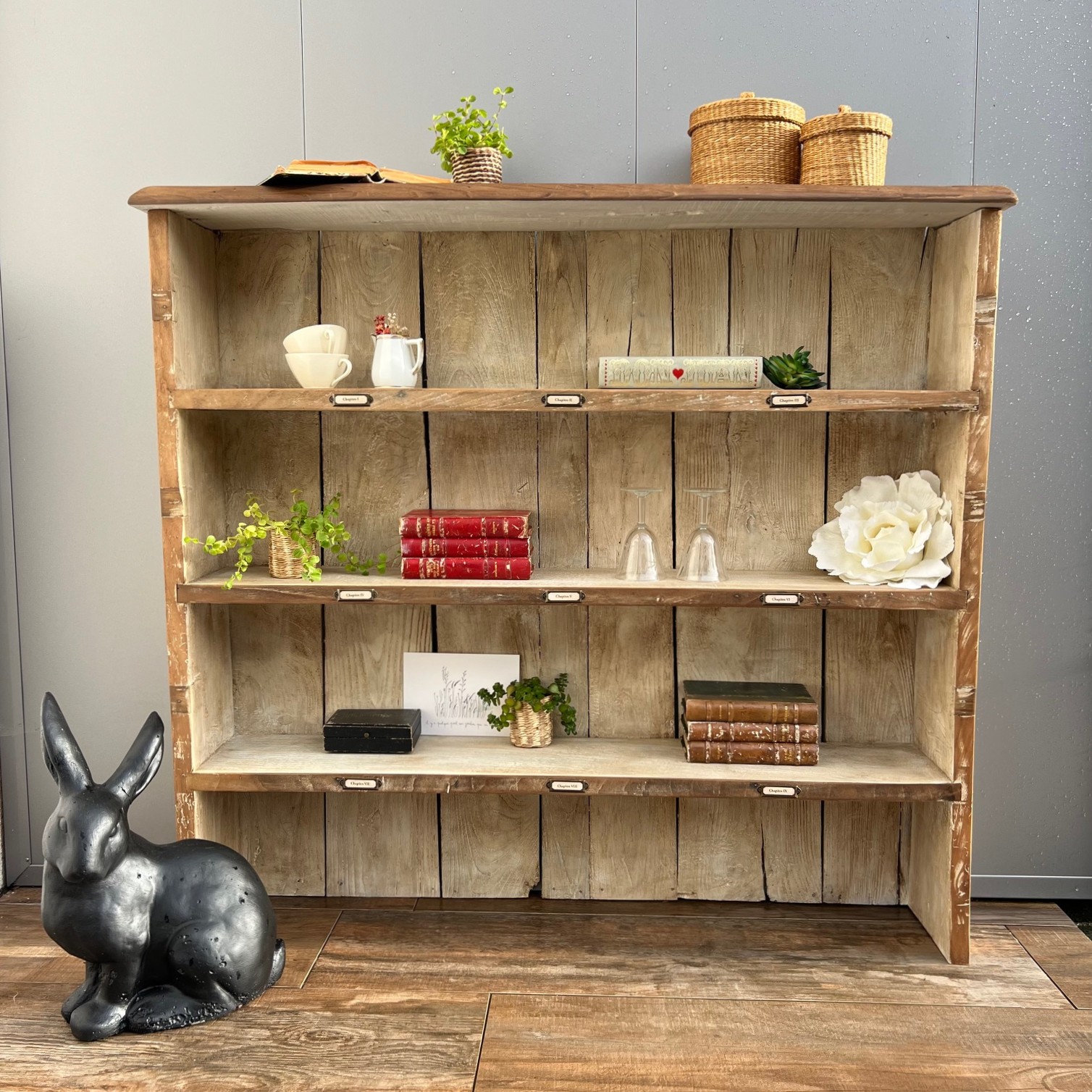 Ses trois grandes étagères avec leurs porte-étiquetttes personnalisables offrent un espace modulable : on y glisse de la vaisselle, des livres anciens, des bocaux, des plantes, des objets de curiosité…