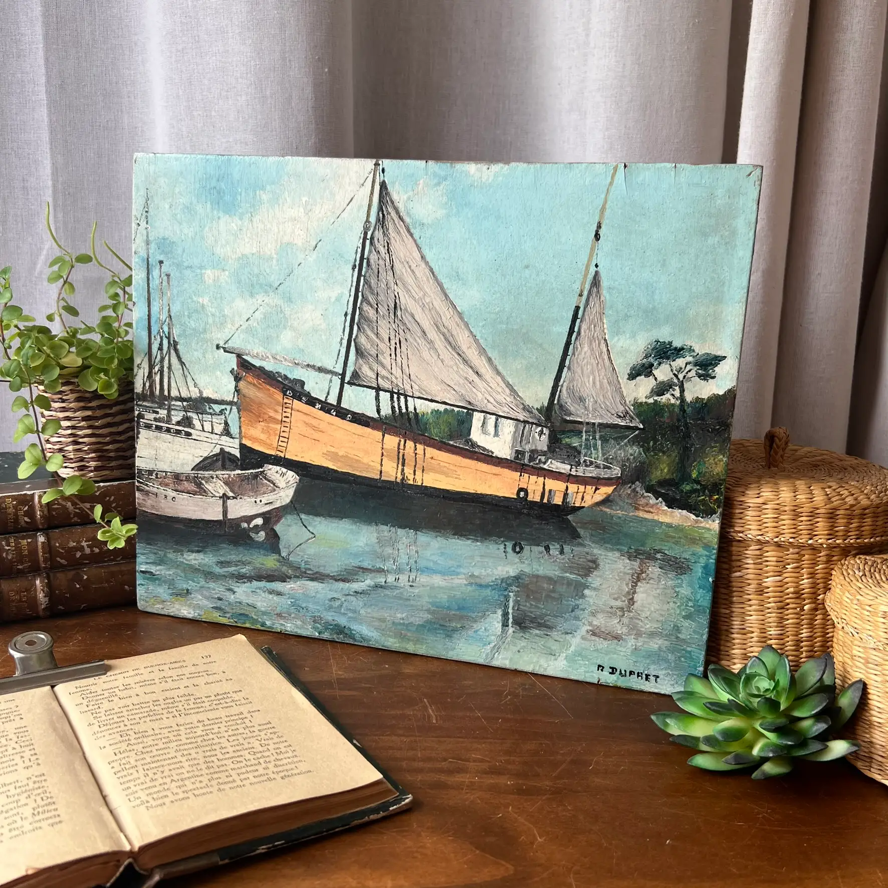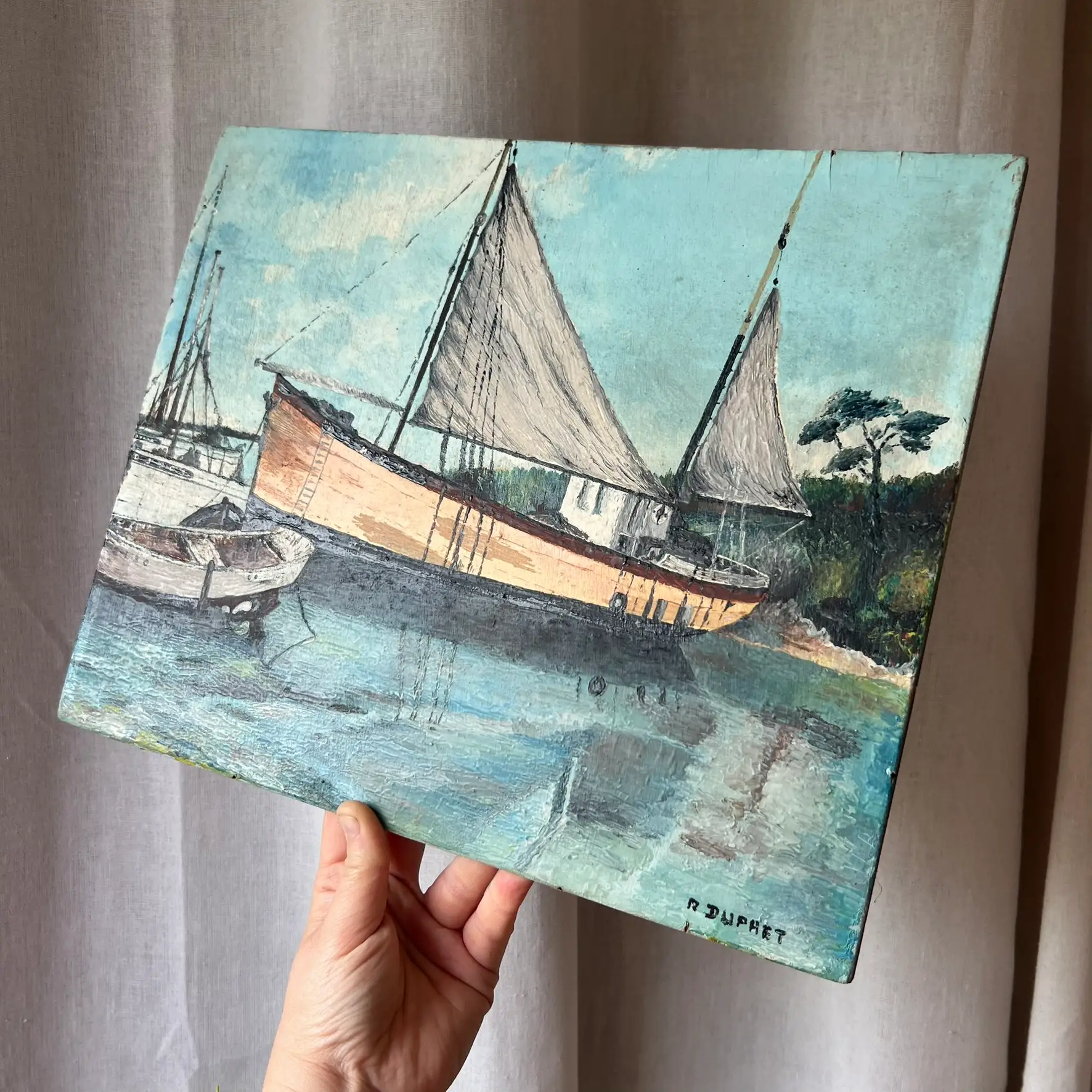 #marineancienne #tableauvintage #huileurbois #decomarine #brocanteartistique
