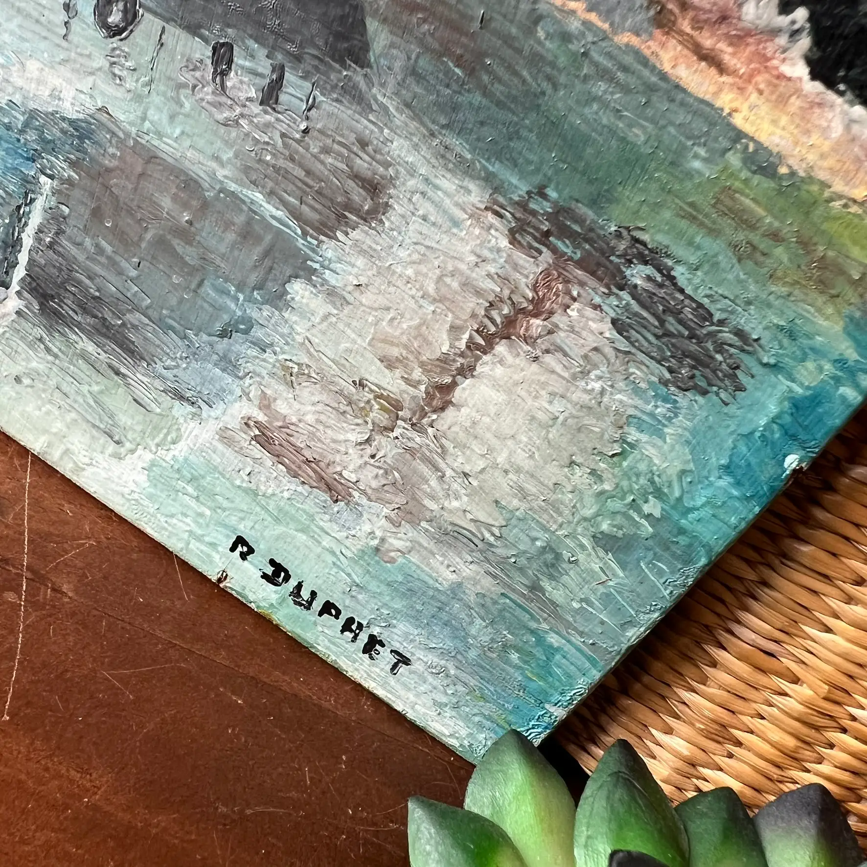 Cette petite marine a tout ce que j’aime : de la lumière, de la matière et une vraie atmosphère. Il s’agit d’une huile sur bois représentant un bateau de pêche, avec de très beaux tons jaunes qui accrochent immédiatement le regard et apportent beaucoup de chaleur.