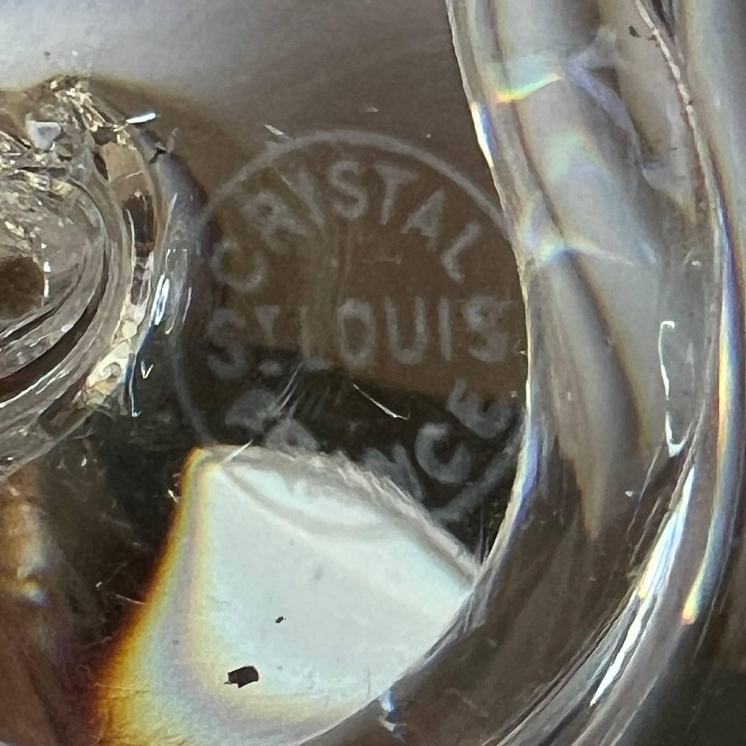 Un pied en cristal Saint-Louis, estampillé sous la base, dont la silhouette libre et organique évoque une créature fantastique. Certains y verront des nageoires, d’autres des oreilles ou des ailes… Qu’importe : il y a de la vie dans cette forme sculptée, presque mouvante.