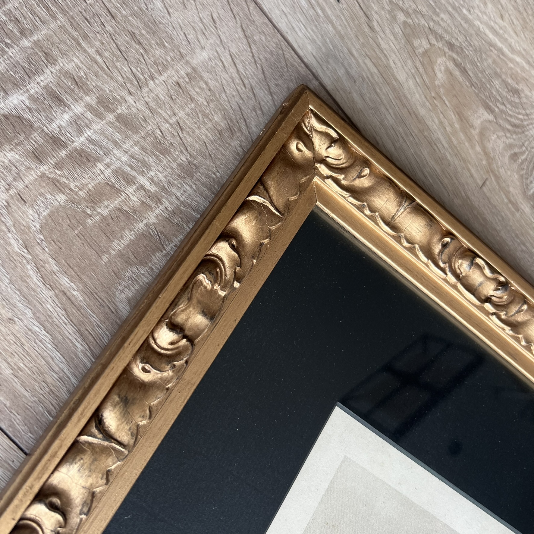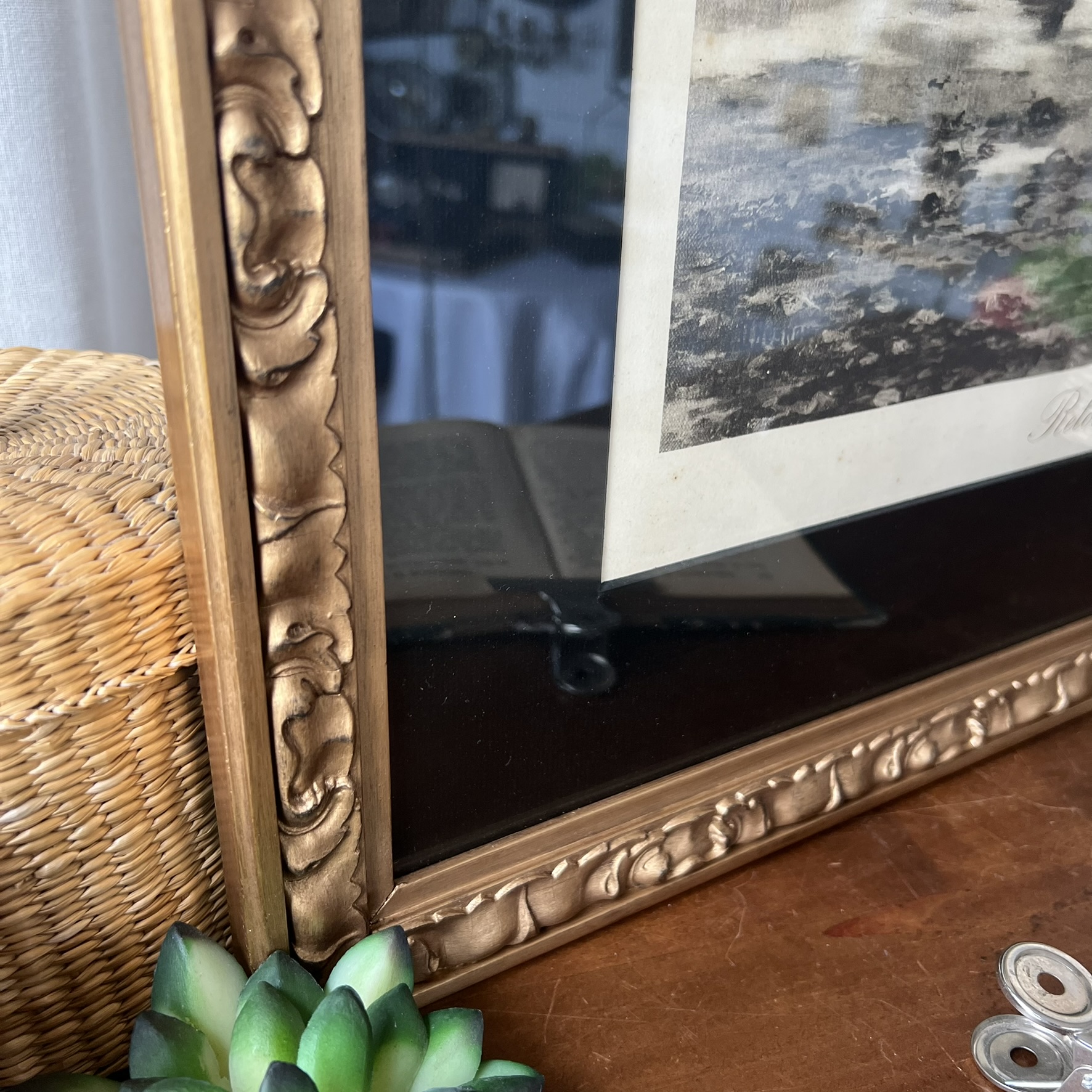 L’œuvre est présentée dans son cadre doré d’origine, qui respecte et met en valeur la gravité douce de la scène.