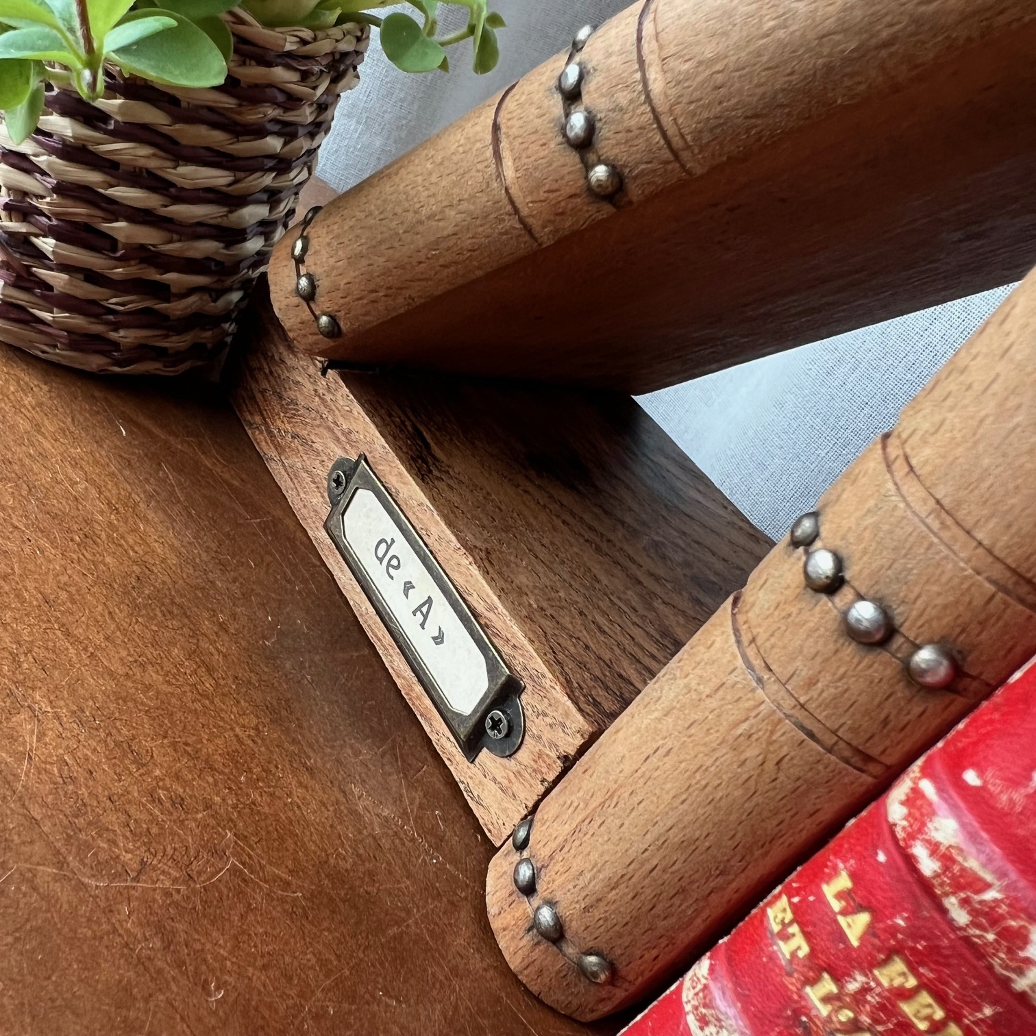 Sur le socle, un détail qui change tout : un porte-étiquette en métal doré, marqué « de A » pour l’un, « à Z » pour l’autre. Comme une promesse silencieuse : celle d’embrasser toute une bibliothèque, du premier au dernier mot.