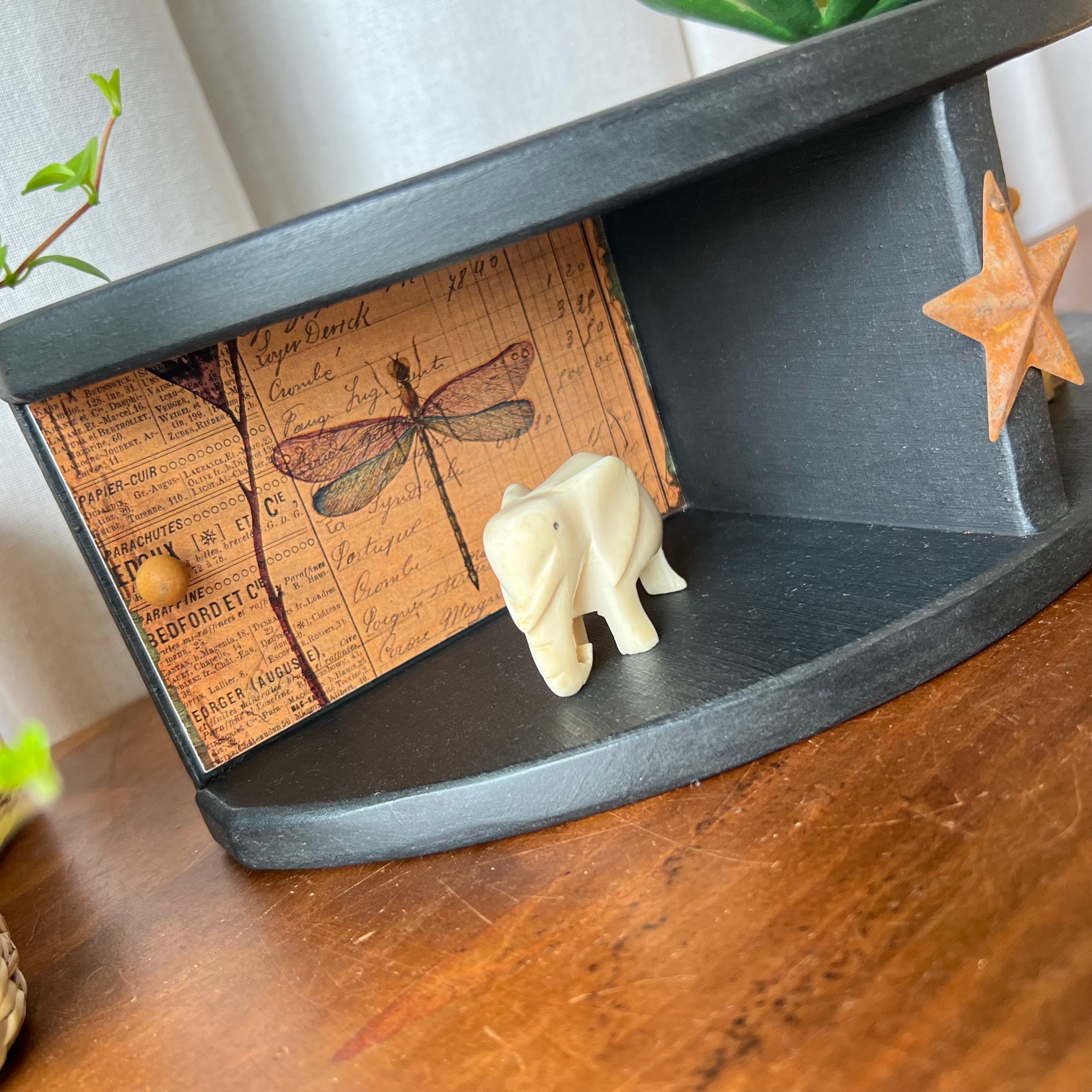 #brocante #brocanteenligne #decorationmurale #etagerevintage #etagerebois #demilune #decorationoriginale #decopoetique #decoretro #pieceunique #faitmain #restaurationbois #upcycling #patine #etoilemetal #decoauthentique
