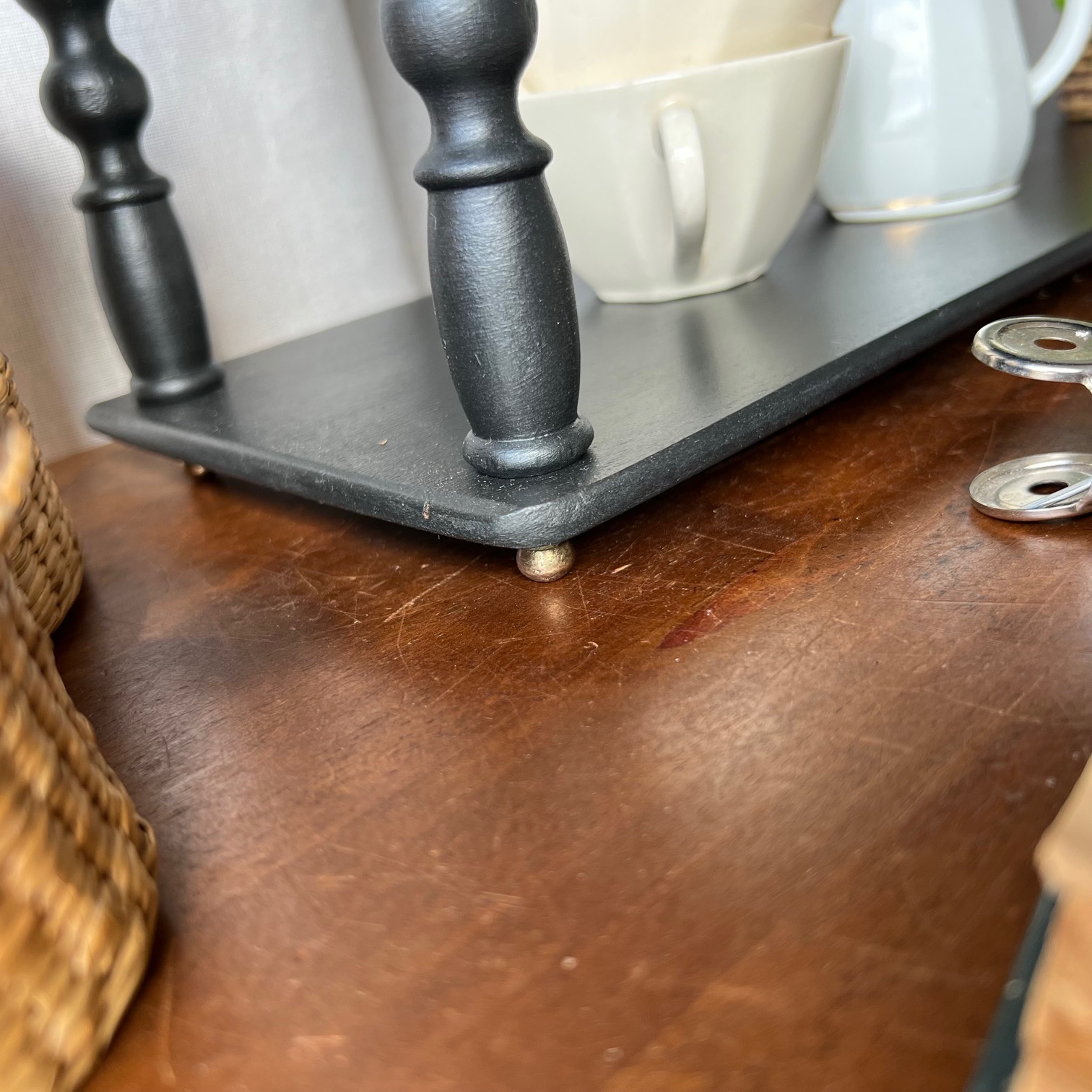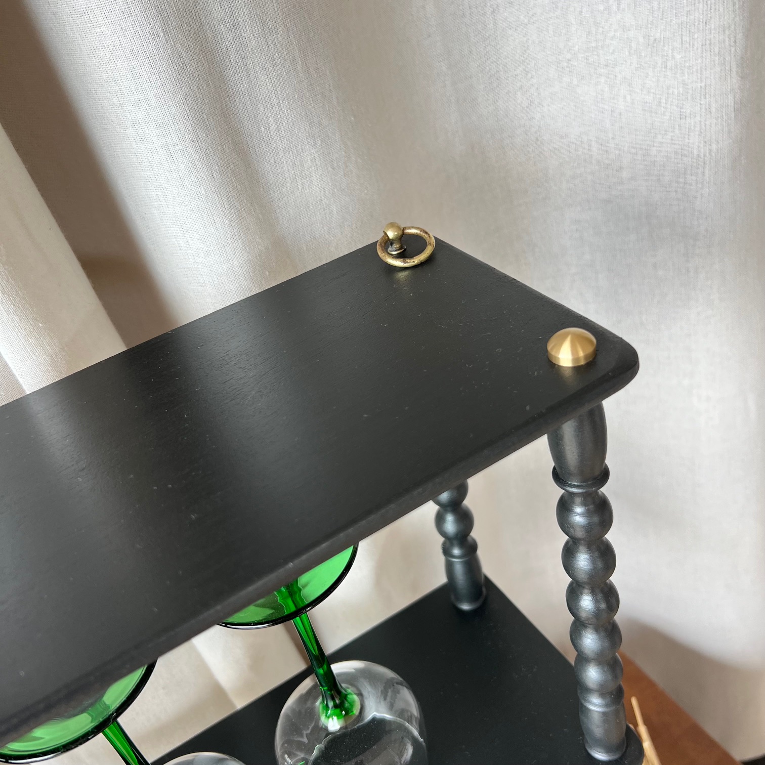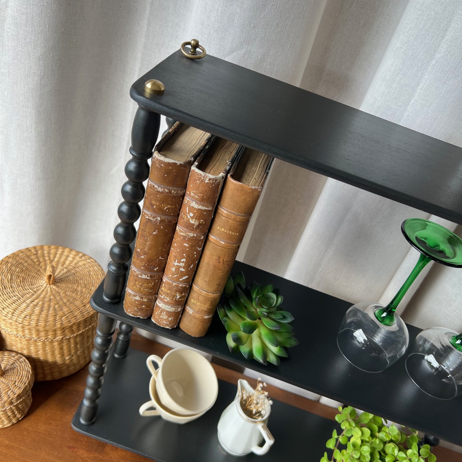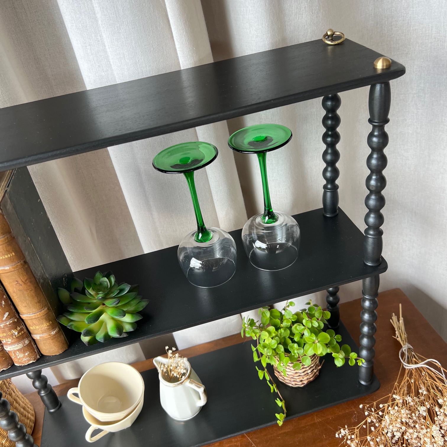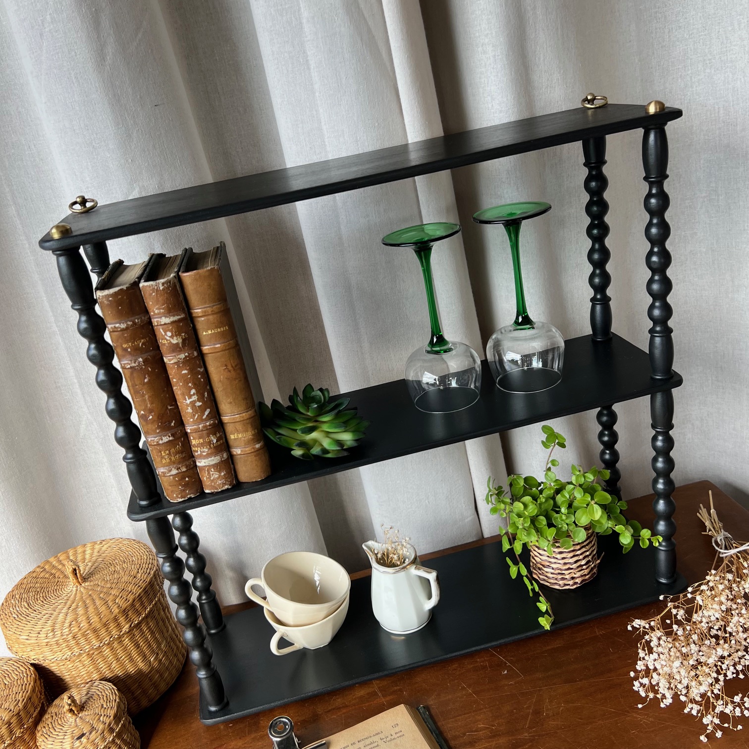 Élégante et pratique, cette petite étagère conjugue le charme du bois tourné et la sobriété du noir mat.