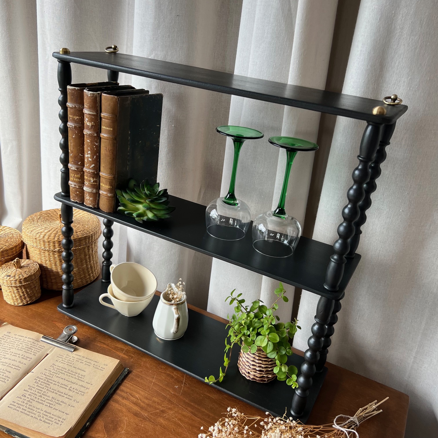 #étagèrevintage #boistourné #styleNapoléon #décoauthentique #brocantestyle #noiretla iton #bibliothèqueancienne #mavaliseen carton #décorationintemporelle #piècerestaurée