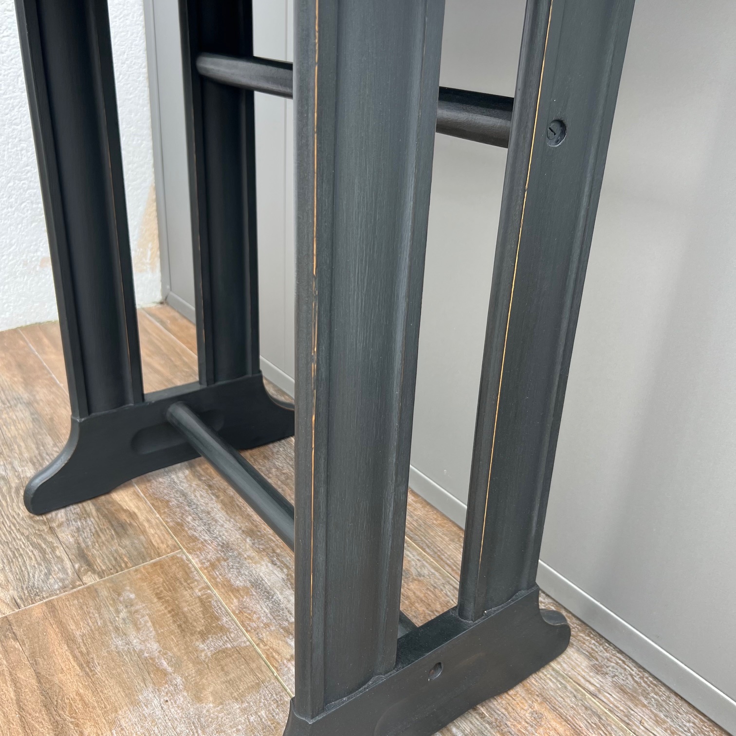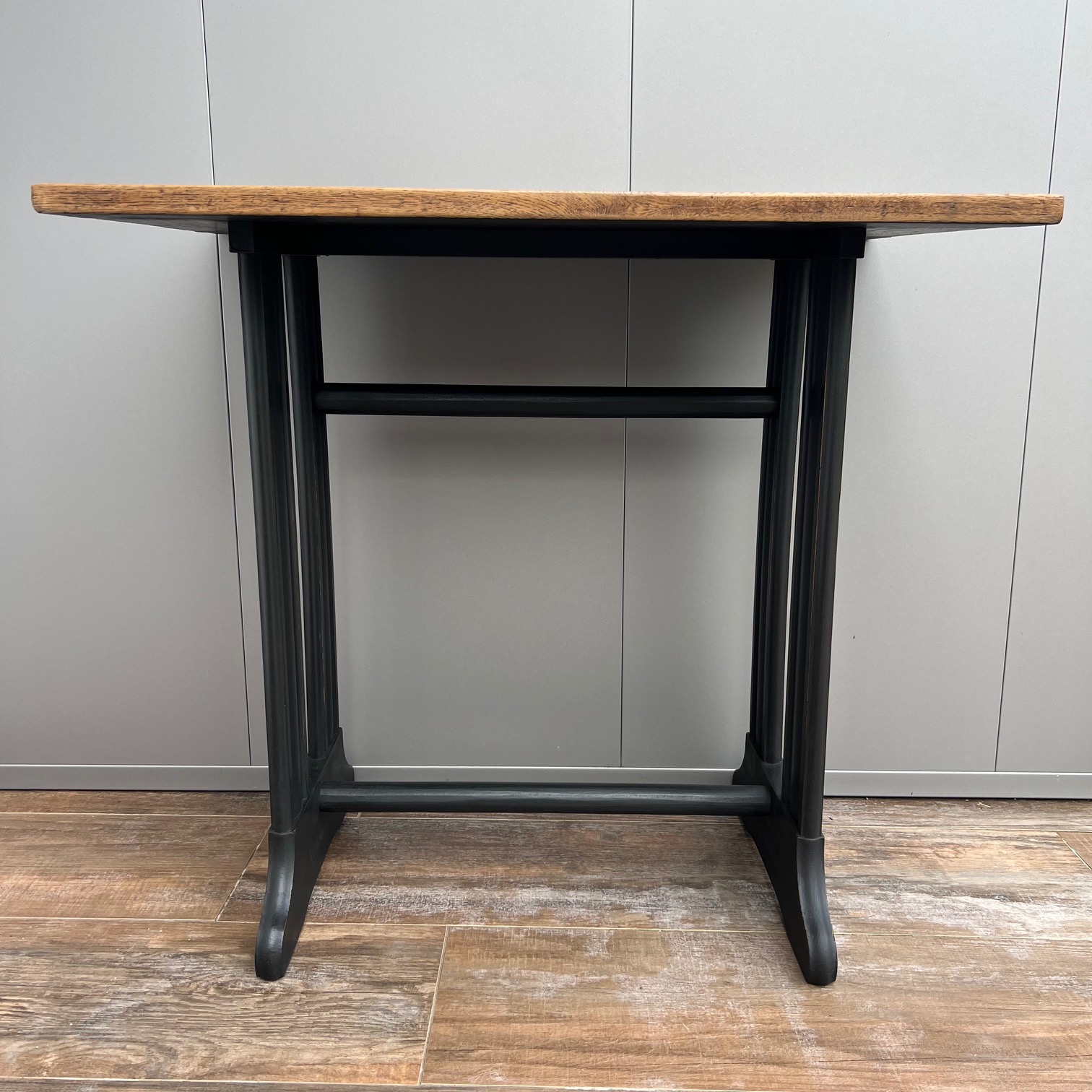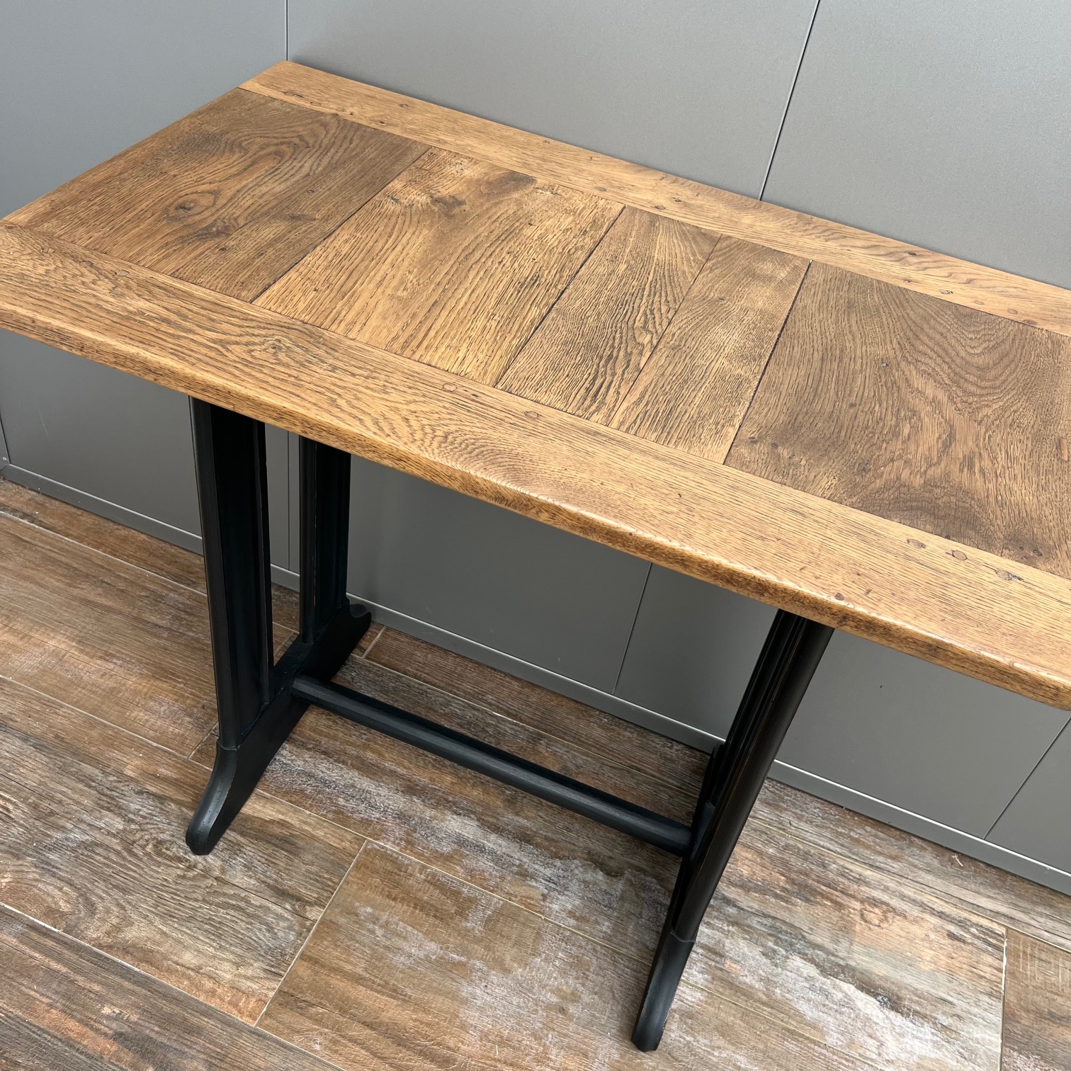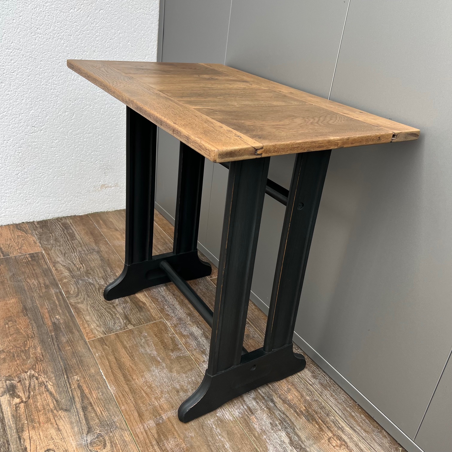 Il était une fois une machine à coudre, dont le piétement portait encore la mémoire des gestes patients. Sa patine noircie, volontairement usée sur les arêtes, laissait apparaître le bois, comme pour rappeler qu’il y a toujours une lumière sous l’ombre, un éclat sous le travail du temps.