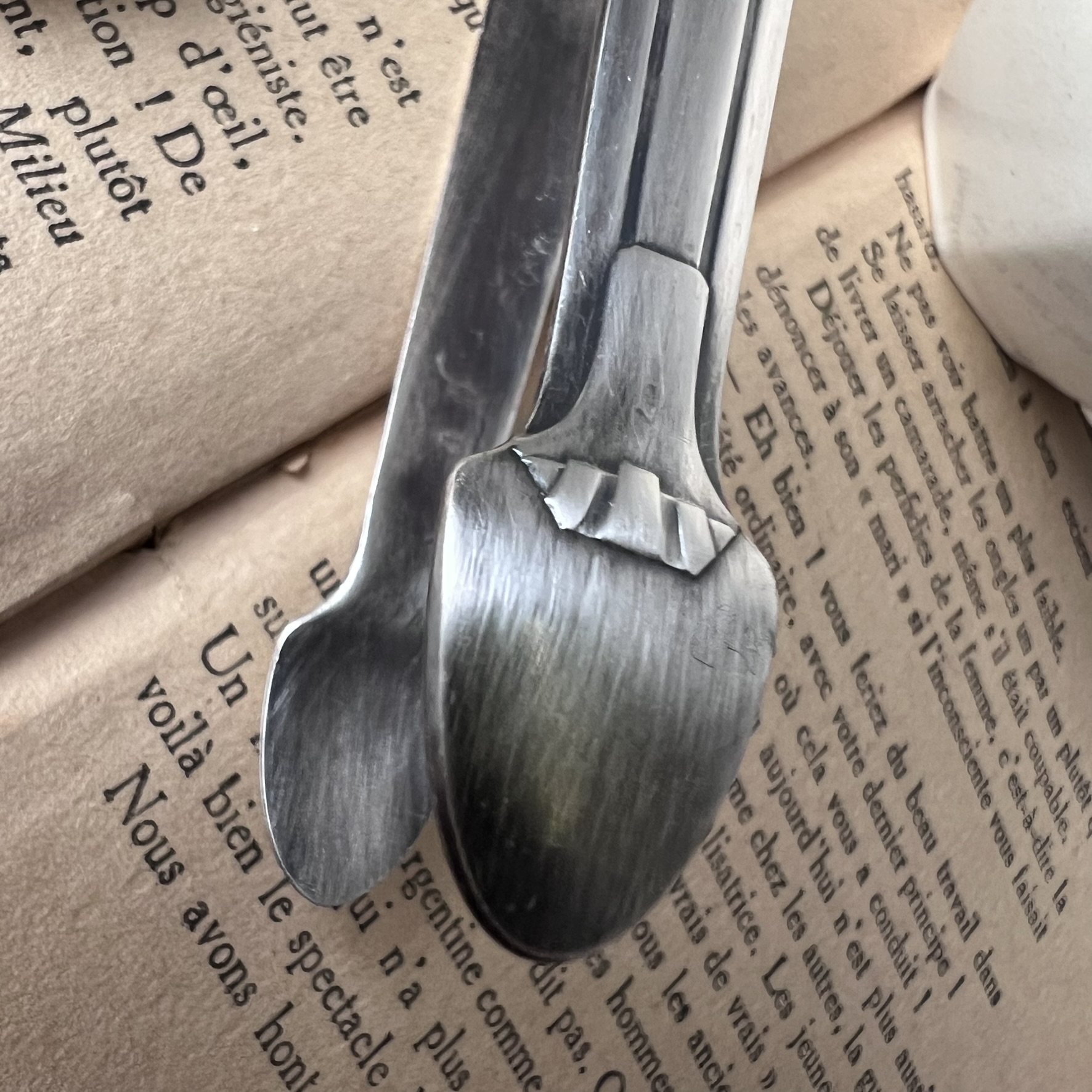 #artdeco #metalargente #pinceasucre #brocantevintage #objetdetable #detailsgeometriques #mavaliseencarton