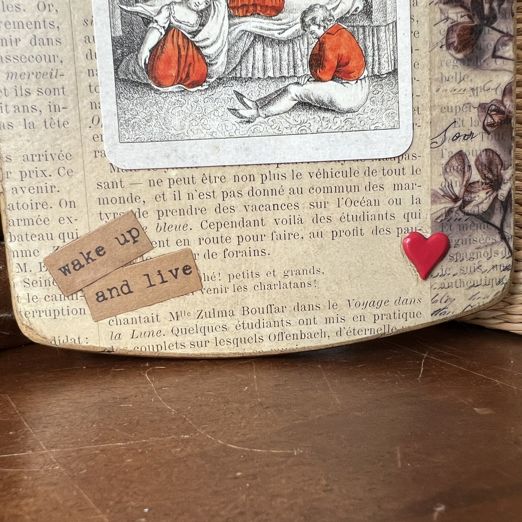 Sur sa face avant, une page originale du journal « L’Illustration » de la fin du XIXᵉ siècle a été contrecollée, apportant une véritable empreinte historique à l’objet.