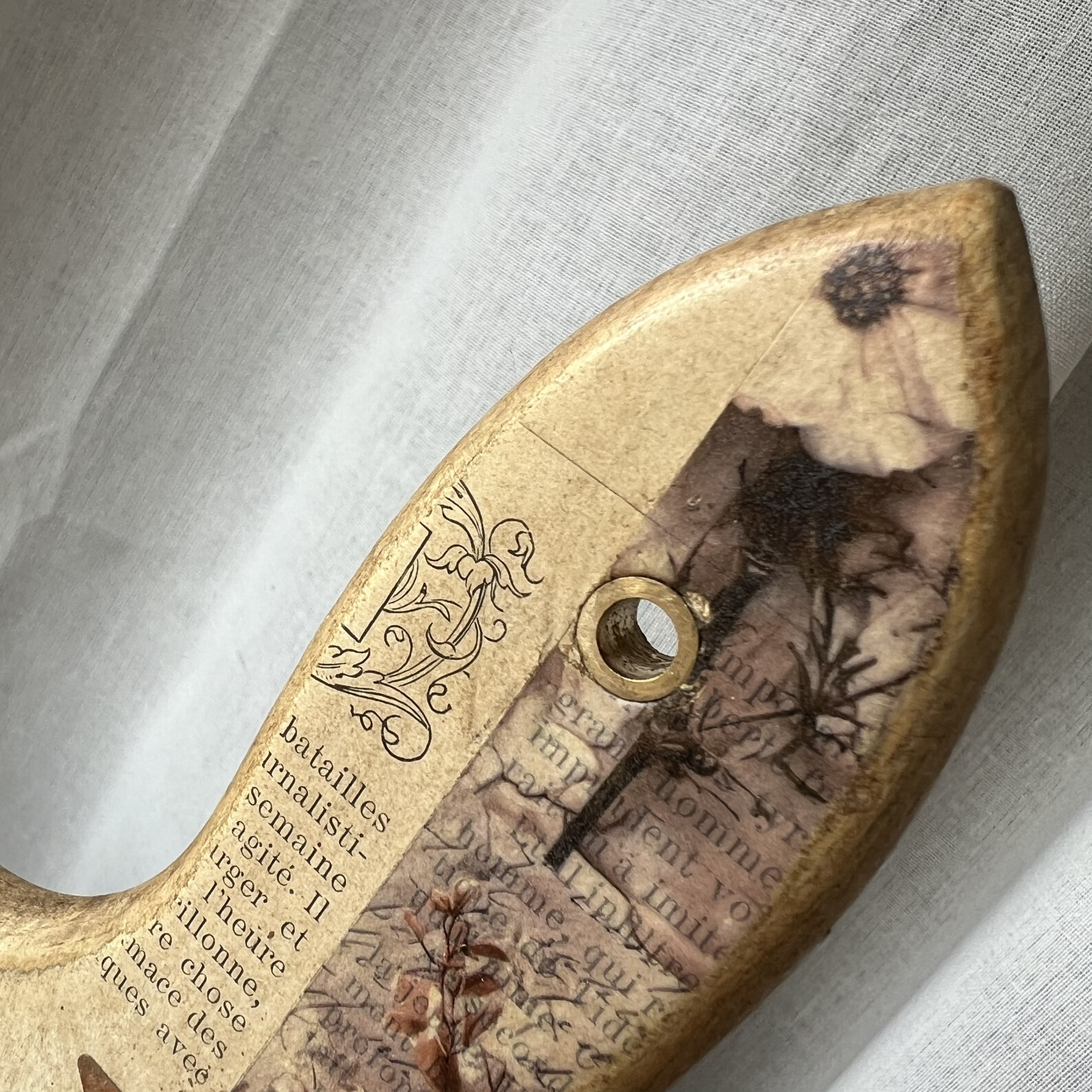 Sur sa face avant, une page originale du journal « L’Illustration » de la fin du XIXᵉ siècle a été contrecollée, apportant une véritable empreinte historique à l’objet.