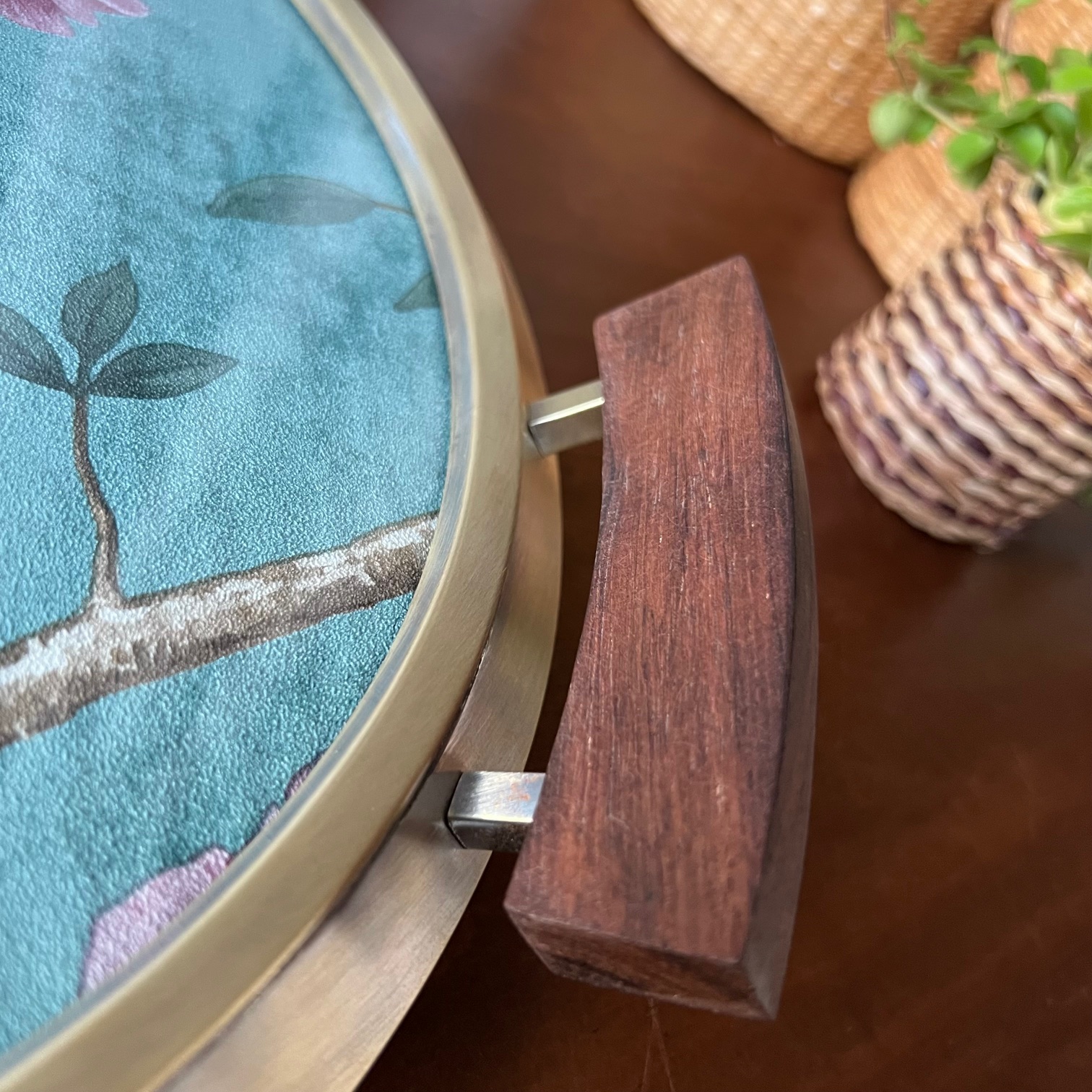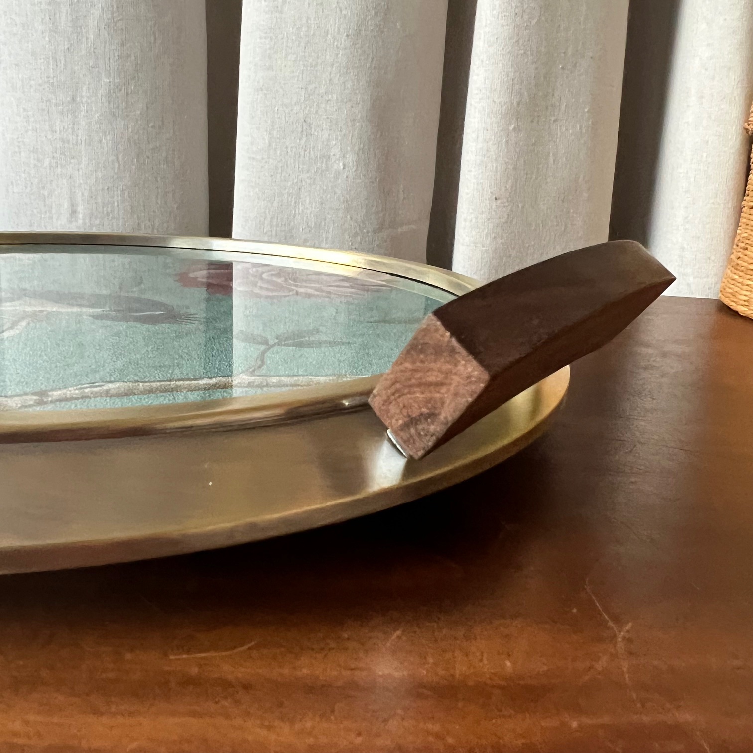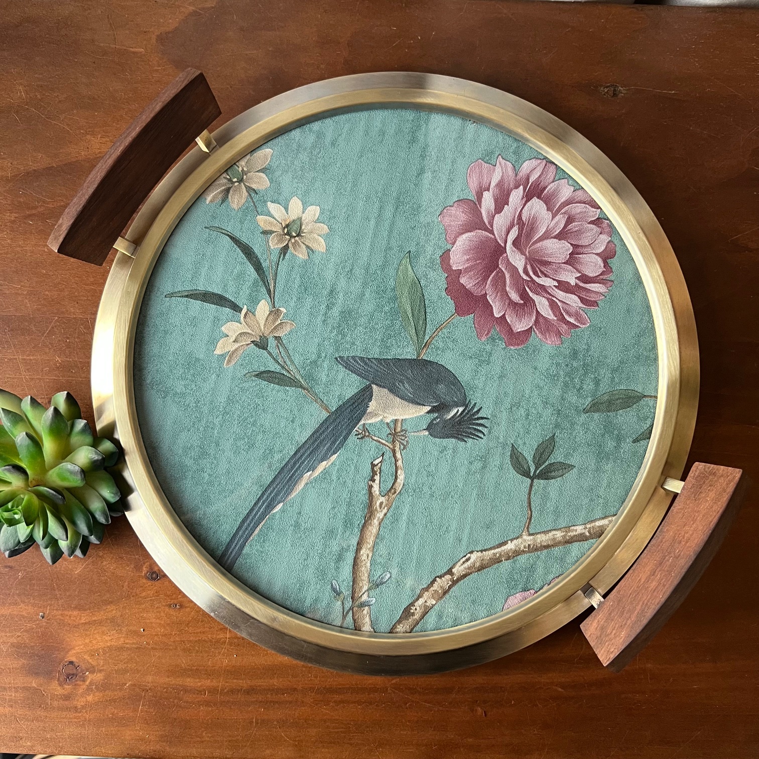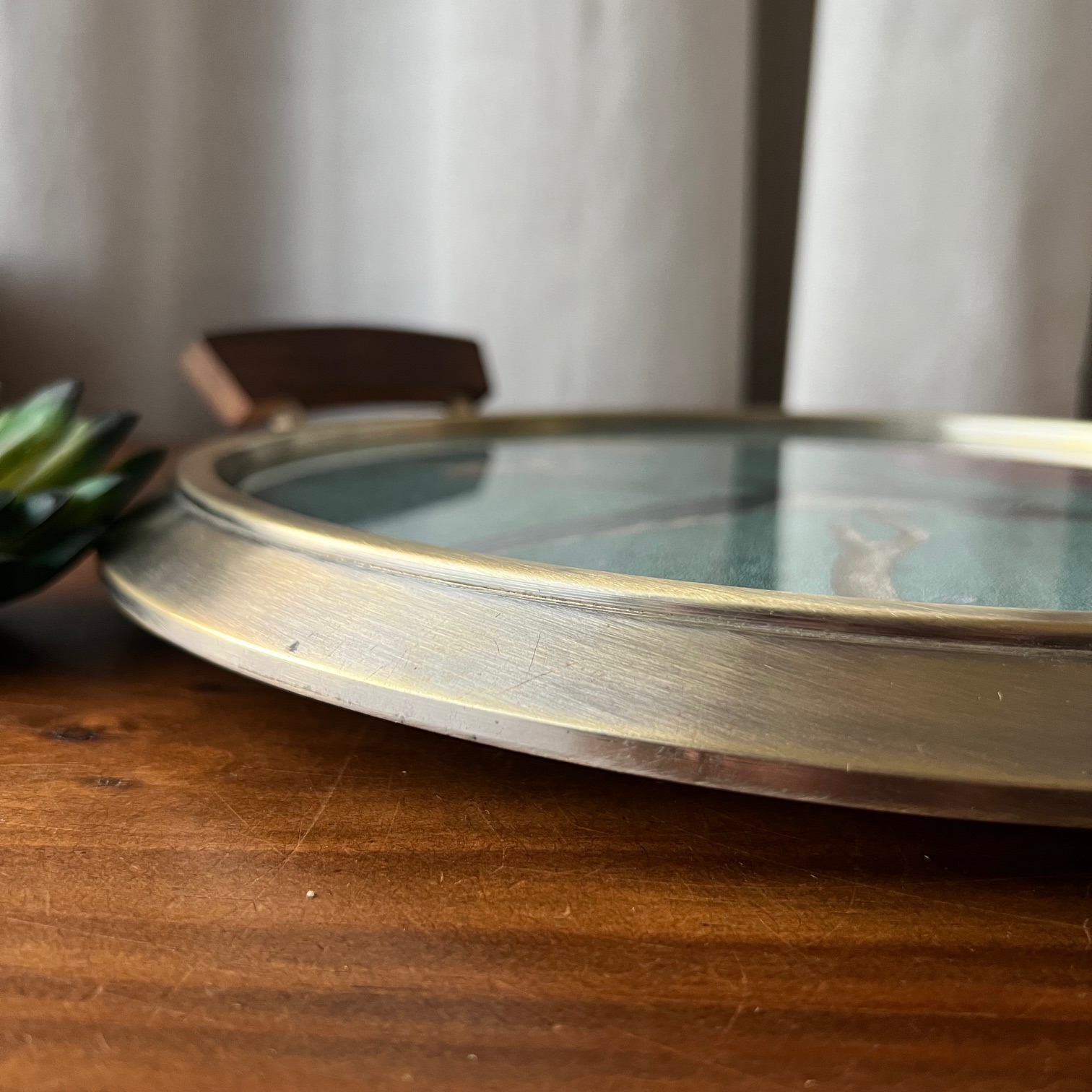 Un plateau Art déco, autrefois coiffé d’un miroir piqué par le temps, m’a ouvert la porte d’une nouvelle idée. Le verre était toujours là, solide, fidèle… alors j’ai choisi de lui offrir un rôle différent.