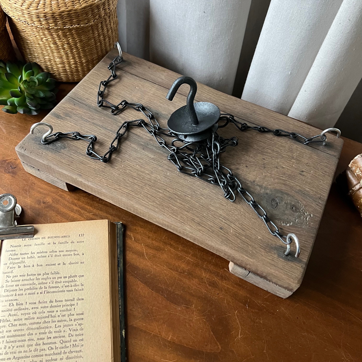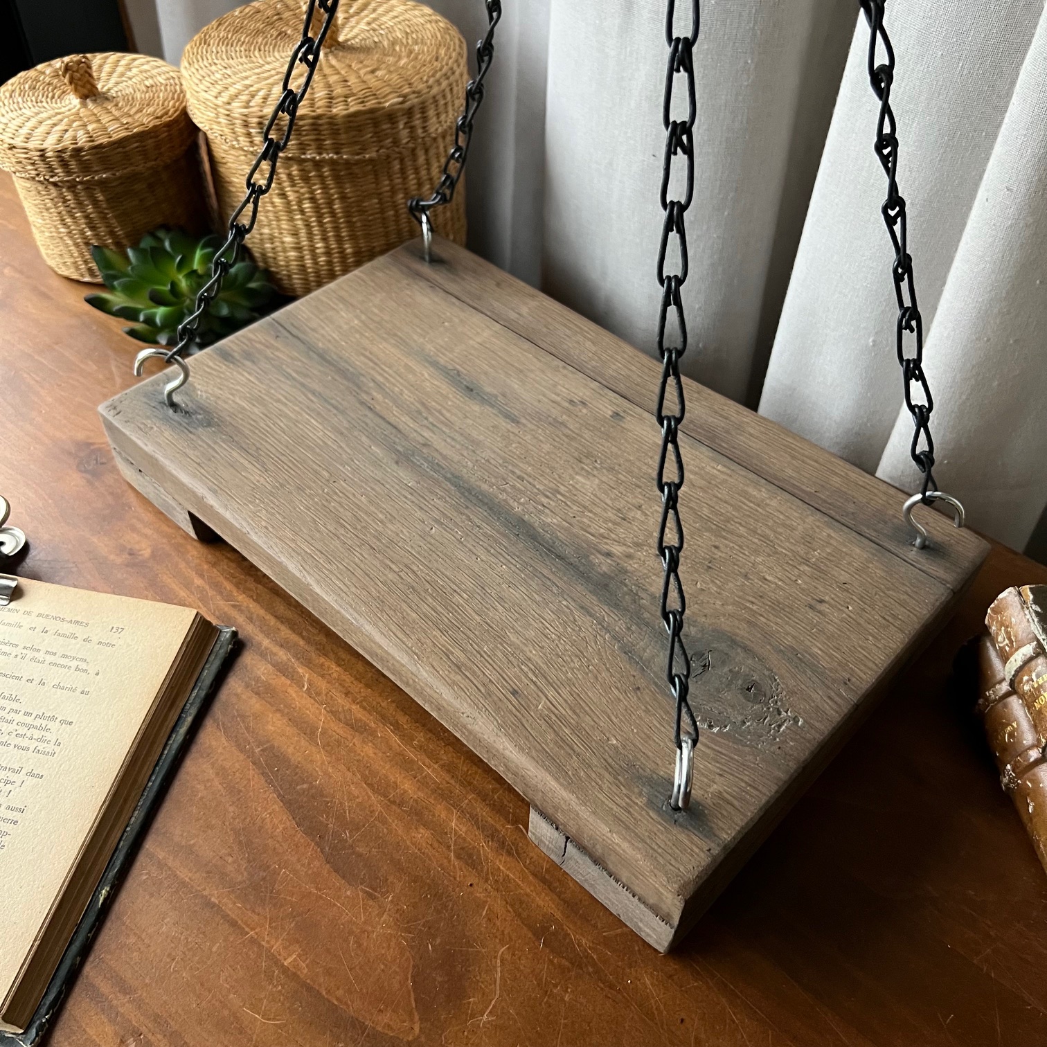 #BalanceAncienne #PlateauSuspendu #DécorationMurale #Upcycling #ObjetsChinés #MadeByMaValise #MavaleenCarton