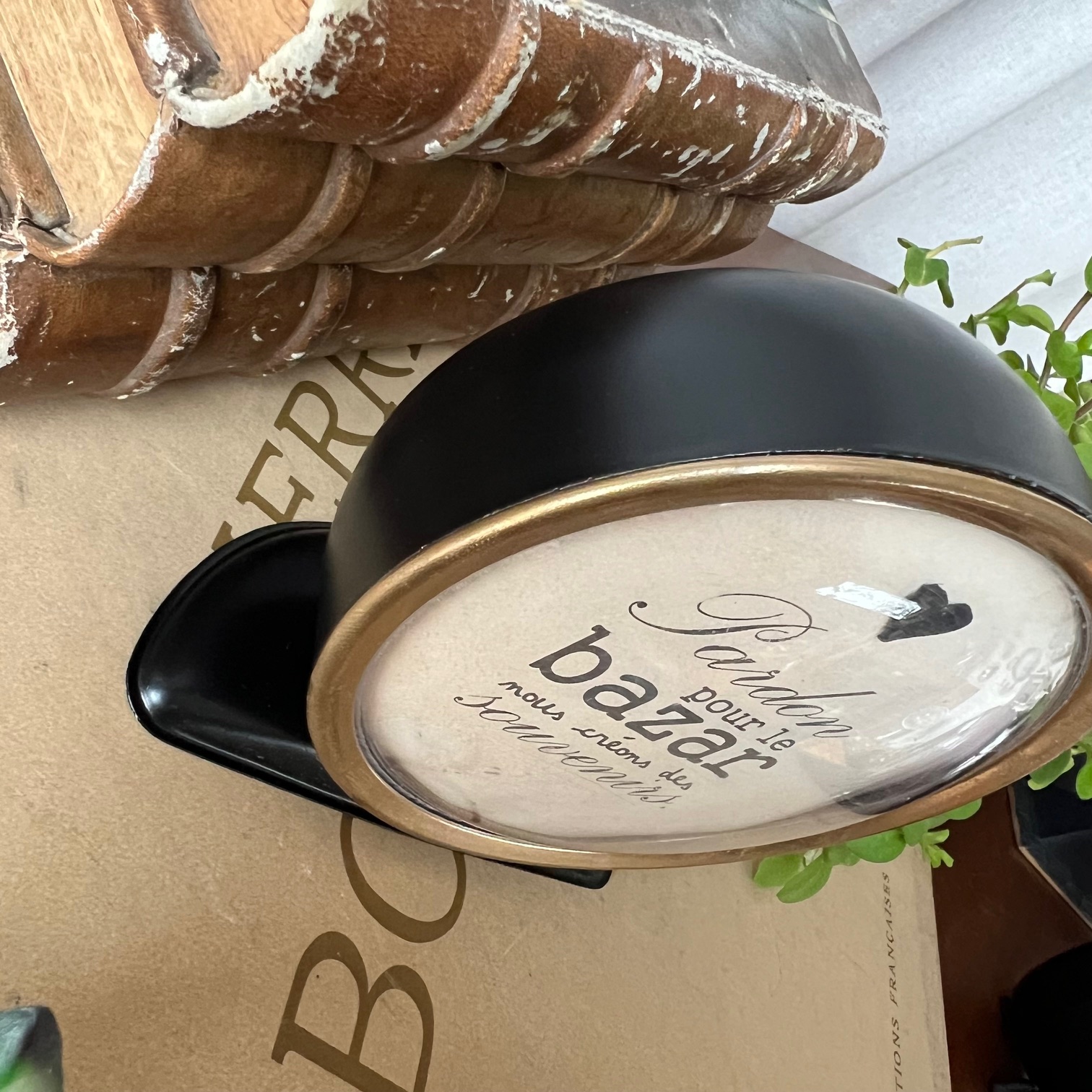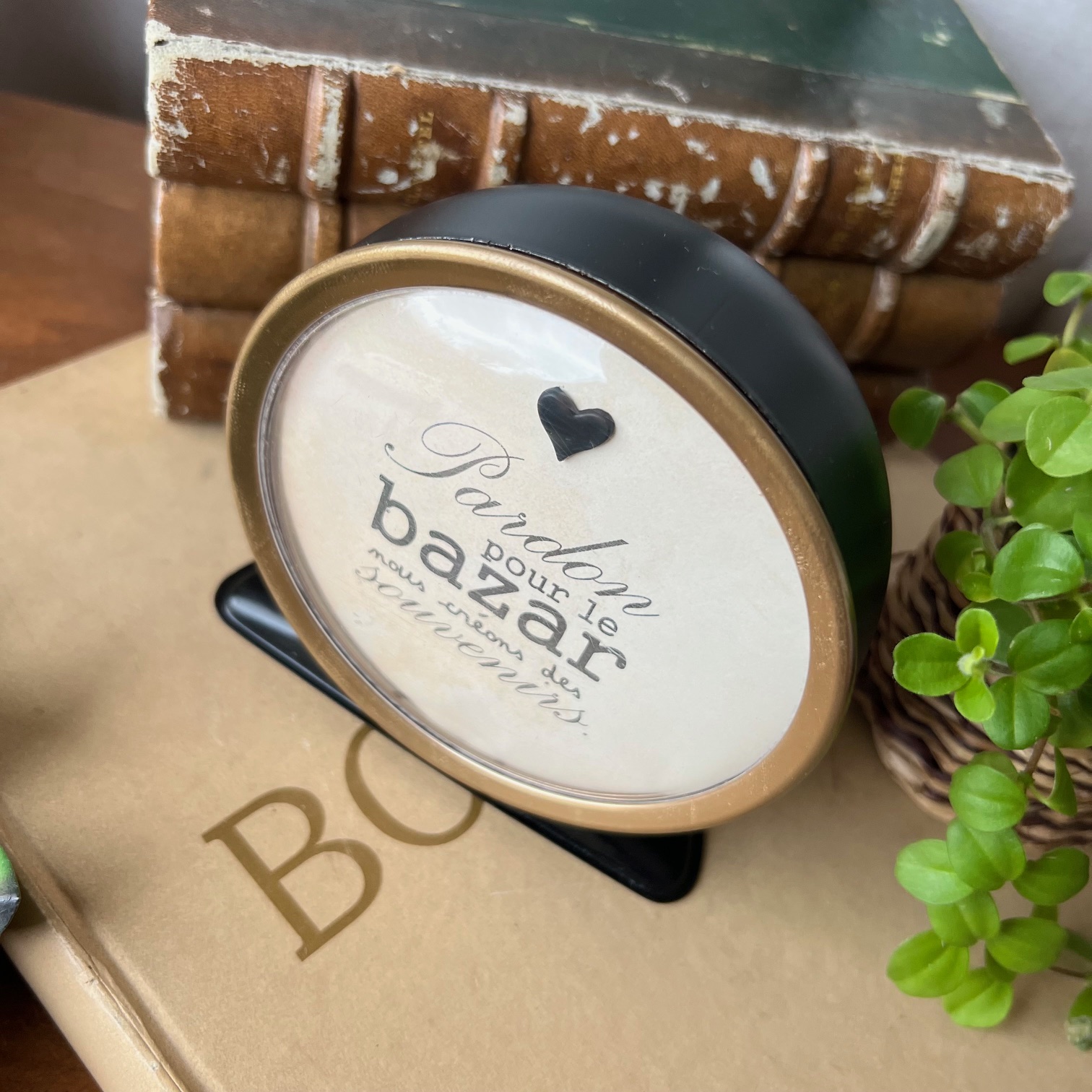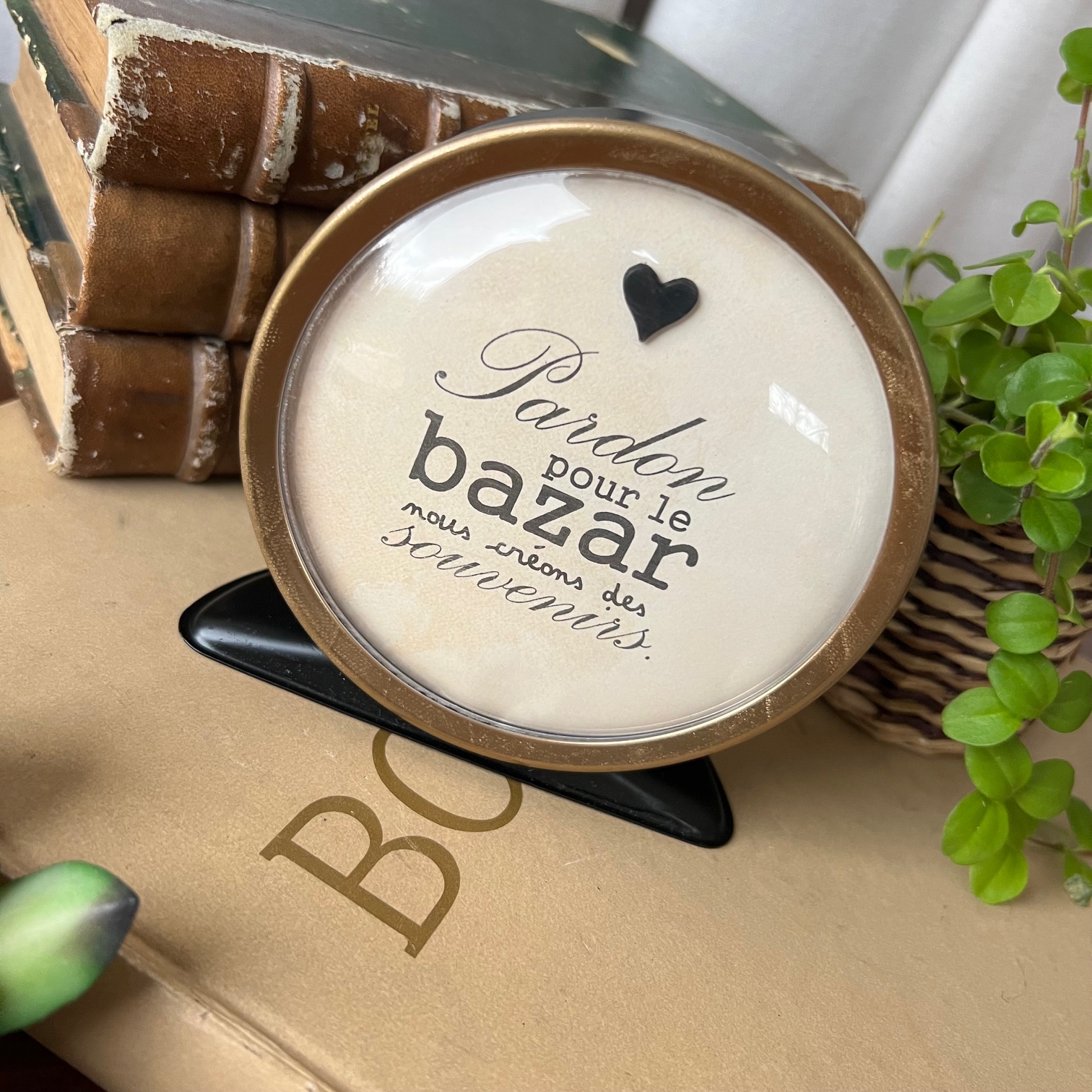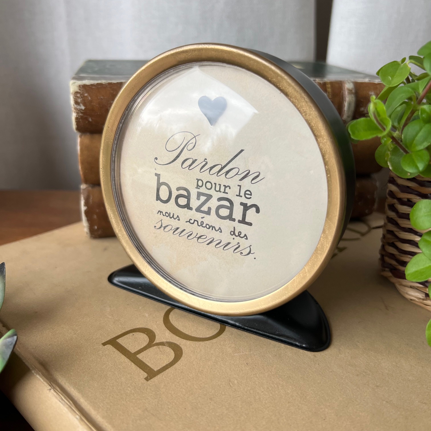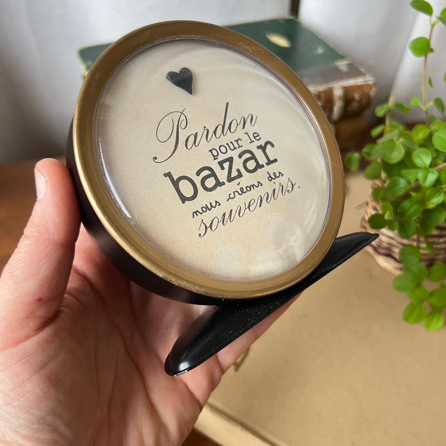 Sous le cadran, une citation pleine de vie et d’espièglerie : « Pardon pour le bazar, nous créons des souvenirs. »