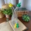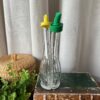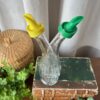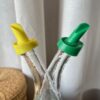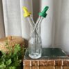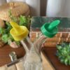 Pour une table pep’s à souhait, on craque pour serviteur huile & vinaigre en verre avec ses bouchons en plastique jaune et vert. En très bel état !