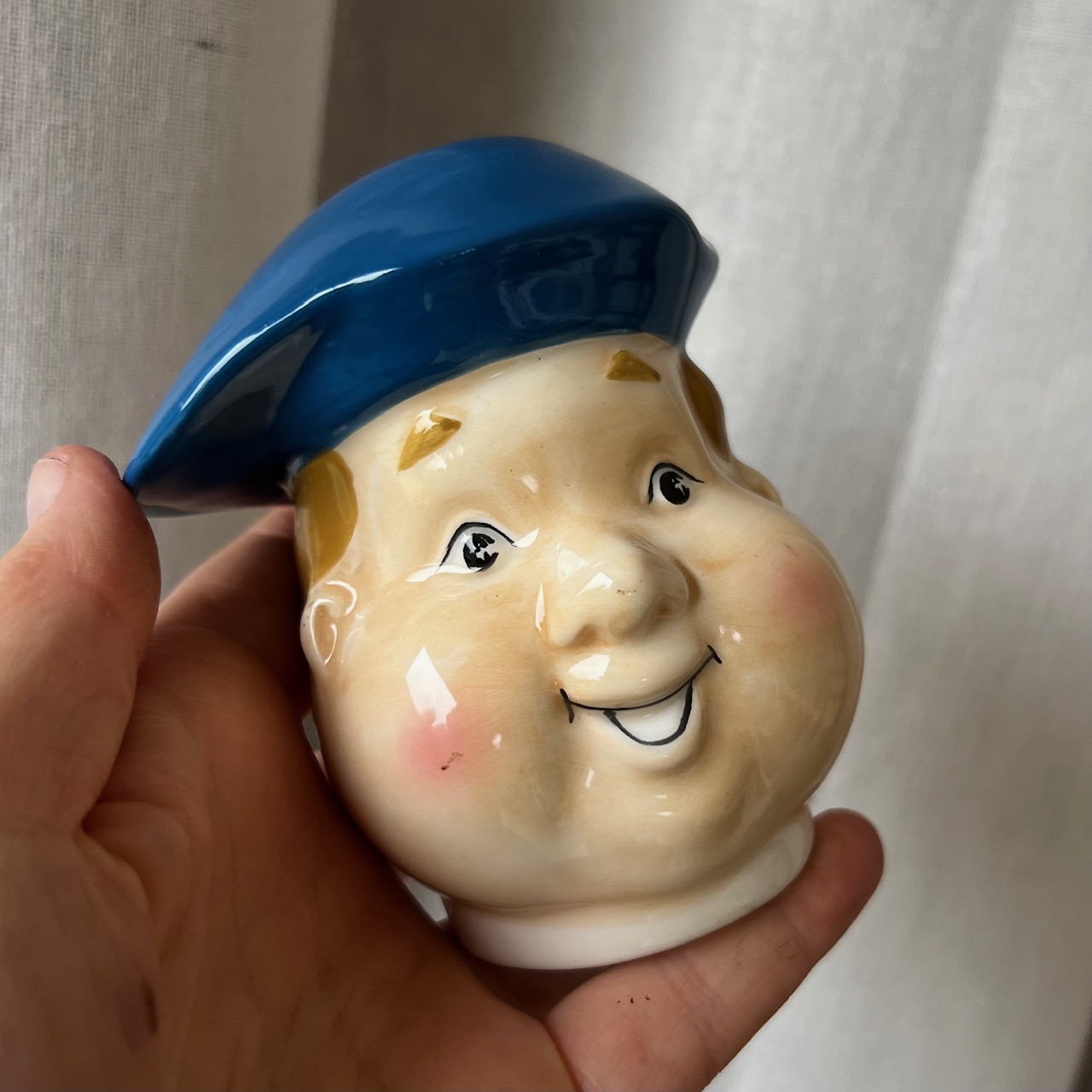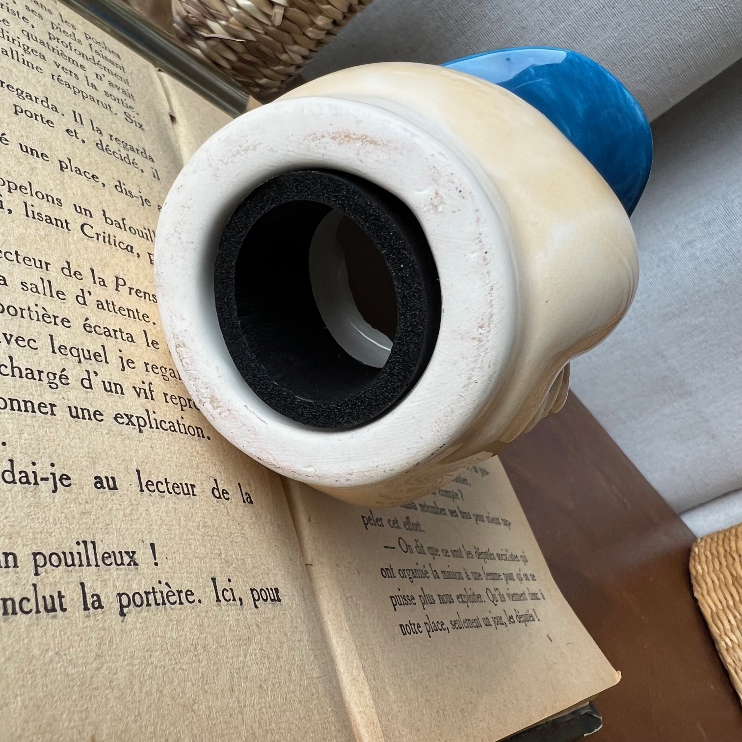 Une façon originale de mettre de la bonne humeur à table ! Ce sur-bouchon en céramique, représentant une tête rieuse coiffée d’un béret bleu, vient se poser directement sur le goulot de votre bouteille.