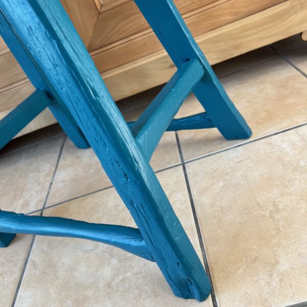 Pour le piétement, j’ai osé un bleu franc, lumineux.